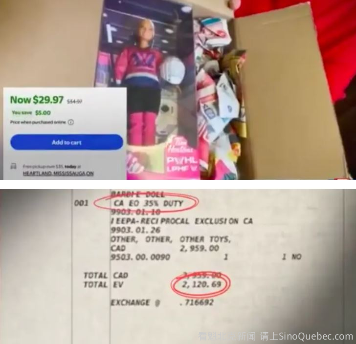 美国波士顿的一位祖母,收到加拿大亲戚代购并寄来的芭比娃娃,但这个价值30加元的圣诞礼物,却被快递公司收取了802美元的关税。 据CTV报道,这位名叫奥康奈尔(Bonnie O'Connell)的波士顿妇人说,自己一直以来都会按时支付账单。 「我一向行事正直,」她说,「如果收到账单,我都会付清。」但这次却并非如此。 当她收到一张802美元的关税账单时,意识到事情不对劲,认为自己没理由会欠钱。毕竟,她购买的芭比娃娃价值仅30加元。 「我当时感觉胃里一阵翻腾,」奥康奈尔说,「我什至不知道该怎么办,该说什么。」 这款芭比娃娃穿着印有Tim Hortons标志的女子职业冰球联盟球衣(WPHL)球衣,当奥康奈尔第一眼看到就欣喜若狂。 作为一名经验丰富的精明购物者,她认为这件礼物对她4岁的小孙女来说堪称完美,小孙女刚开始学滑冰,又特别喜欢芭比娃娃。于是她请住在加拿大新斯高沙省的表兄弟帮忙取货寄给她。 但由于美国对来自加拿大的商品加征了35%关税,这意味着运送这些货物时要填写各种新文件。而当地邮递公司FedEx的一位店员告诉她表兄弟,他们会帮她处理。 而他们也的确帮她表兄弟办好了,但他「没注意到——因为后面有人排队——他们把要他签字的东西递给他时,本来应该写29.97元的地方,小数点的位置不知怎么弄错了。」 事实是,小数点被向右移动了两位,亦即这件价值30加元的芭比娃娃,被错误地估价为近3,000加元。 奥康奈尔笑说:「你见过几个芭比娃娃的价格接近3000元的?」 换算成美元之后,这只芭比娃娃约为2,100美元,但按35%的关税税率计算,进口税是742美元,加上其他费用,总共是802美元。 FedEx先把芭比娃娃送到了,关税账单则于几周之后才寄到。 奥康奈尔说,尽管非常爱自己的孙女,但她从不会花这么多钱买礼物,因为这大大超出了圣诞节的预算。 而奥康奈尔的遭遇凸显了今年假日季,加美跨境家庭送礼所面临的新现实。 特朗普政府的关税政策,以及取消了低价免税政策(该政策允许大部分价值低于800美元的产品免税进口),带来了额外的成本和繁琐的手续。 奥康奈尔发邮件把情况通知了FedEx,对方告知她可能需要几个月才能解决问题。 为了尽快解决这个问题,她通过媒体曝光此事,希望能有所帮忙。 当NewsCenter 5介入后,FedEx迅速从奥康奈尔的账户中取消了802美元的费用。 此事提醒人们,签署任何文件时务必仔细查证。 加拿大邮务公司(Canada Post)表示,所有寄往美国的包裹——即使是价值低于100元的礼物——都必须缴纳关税。 税款应该在包裹寄出前支付。