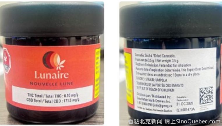 魁北克生产商 Great White North Growers Inc. 宣布召回部分 Lunaire Nouvelle Lune 干大麻 产品,因检测发现砷含量过高。