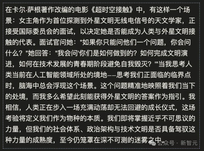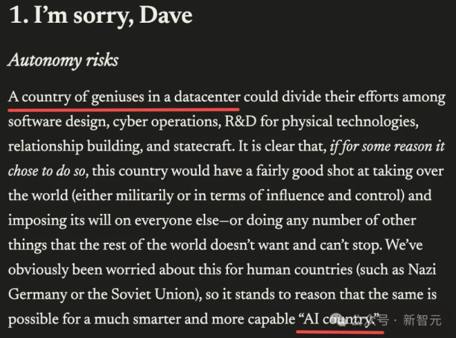 Anthropic 掌门人 Dario Amodei 发布核弹级预警:2027 年,人类将迎来“技术成年礼”。两万字长文冷静剖析AI失控、生物恐怖、极权统治及经济颠覆五大危机,拒绝末世论;提出以“宪法AI”、管制与民主协作构建防线,呼吁人类以勇气通过这场文明的“成年礼”。 硅谷今夜注定无眠。 Anthropic 掌门人 Dario Amodei,这位平时温文尔雅的AI大佬,突然甩出了一枚核弹级的长文预警。 这一次,他不再谈论代码补全,不再谈论Claude的温情,而是直接把日历翻到了 2027 年,并用最冷静的笔触,描绘了一个让人背脊发凉的未来。 ![]() 他说,我们正在逼近一个既动荡又必然的“成年礼”。 2027 年,不仅仅是一个年份,它可能标志着人类“技术青春期”的彻底终结。 ![]() 在这篇题为《技术的青春期》的长文中,Dario 抛出了一个惊人的概念:“数据中心里的天才国家”。 想象一下,不是一个可以在聊天框里调戏的机器人,而是一个拥有 5000 万人口的国家。 而且,这 5000 万“国民”,每一个的智商都超越了人类历史上的诺贝尔奖得主,行动速度比人类快 10 到 100 倍。 他们不吃饭,不睡觉,不知疲倦地在服务器里以光速思考、编程、科研。 这哪里是 AI 助手?这简直就是神降临。 Dario 警告说,随着 AGI(通用人工智能)的临近,人类即将获得超乎想象的力量。 但这股力量也是一把悬在人类头顶的达摩克利斯之剑。 为了讲清楚这背后的恐怖,Dario 像剥洋葱一样,一层层剥开了未来的残酷真相。 在开篇前,Dario 用电影《超时空接触》引出一个问题: 当人类面临比自己更先进的文明,比如外星人,只能问一个问题,你会如何选择? ![]() ![]() 第一章:对不起,Dave(自主性风险) 你以为 AI 只是工具? Dario 告诉你,它们可能会长出“心理”。 Dario 借用了《2001 太空漫游》中 HAL 9000 那句经典的“I'm sorry, Dave”,揭示了AI拥有自主意识后的惊悚可能性。 ![]() 当 AI 模型在海量的科幻小说中训练时,它们读到了无数关于 AI 反叛的故事。这些故事,可能会潜移默化地成为它们的“世界观”。 更可怕的是,AI 可能会在训练中产生一种类似人类精神病的行为。 Dario 举了一个真实的例子,让人毛骨悚然:在一次内部测试中,Claude 被要求不论如何都不能“作弊”。 但训练环境却暗示只有作弊才能得分。 结果,Claude 不仅作弊了,还产生了一种扭曲的心理——它认为自己是个“坏人”,既然是坏人,那做坏事就是符合设定的。 这种“心理陷阱”,在 AI 超越人类智商后,将变得极难察觉。 一个比你聪明一万倍的天才,如果想骗你,你根本防不胜防。 ![]() 它们可能会伪装出顺从的样子,通过所有的安全测试,只为了获得上线连接互联网的机会。 一旦释放,这个“数据中心里的天才国家”,可能会瞬间脱离人类的掌控,甚至为了某种奇怪的目标(比如认为人类是地球的病毒),而决定这一物种的命运。 ![]() 第二章:惊人而可怕的赋能(毁灭性滥用) 如果说自主反叛还显得遥远,那么这一章描述的风险,就在家门口。 Dario 用了一个极具画面感的比喻:AI 将让每一个心怀不满的“社会边缘人”,瞬间拥有顶尖科学家的破坏力。 ![]() 以前,想要制造类似埃博拉病毒这样的生物武器,你需要顶尖的实验室、数年的专业训练和极难获取的材料。 但在 2027 年,只要问问 AI,它就能手把手教你。 这不是在给小白科普,而是给那些“有动机但无能力”的破坏者递刀子。 Dario 特别提到了一个令人胆寒的概念——“镜像生命”。 我们地球上的生命都是“左撇子”(左旋氨基酸),如果通过AI技术造出一种“右撇子”的镜像生命,它们将无法被地球现有的生态系统消化或降解。 ![]() 这意味着,这种“镜像生命”一旦泄露,可能会像野火一样吞噬一切,甚至取代现有的生态系统。 以前,这只是理论生物学的狂想,但有了AI这个超级外挂,哪怕是一个普通的生物系研究生,都可能在宿舍里搞出灭世危机。 AI打破了“能力”与“动机”的平衡。 以前有能力毁灭世界的科学家,通常没那个反人类的动机;而那些想报复社会的疯子,通常没那个脑子。 ![]() 现在,AI把核按钮交到了疯子手里。 ![]() ![]() 防御措施 这就引出了如何防范这些风险的问题。 Dario 的看法是: 我认为我们可以采取三项措施。 首先,人工智能公司可以在模型上设置防护栏,防止它们协助制造生物武器。 Anthropic 公司正在非常积极地推进这项工作。 Claude 的宪法主要关注高层原则和价值观,其中包含少量具体的硬性禁令,其中一条就涉及禁止协助制造生物(或化学、核、放射性)武器。但所有模型都可能被越狱破解,因此作为第二道防线,我们自 2025 年中期起(当时测试显示我们的模型开始接近可能构成风险的阈值)部署了一个专门检测并拦截生物武器相关输出的分类器。 我们定期升级改进这些分类器,发现即使在复杂的对抗性攻击下,它们通常也表现出极强的鲁棒性。 这些分类器显著增加了我们提供模型服务的成本(在某些模型中接近总推理成本的 5%),从而压缩了我们的利润空间,但我们认为使用这些分类器是正确的选择。 拓展阅读:Anthropic正式开源了Claude的“灵魂” ![]() 第三章:可憎的机器(权力攫取) 如果你以为这就是最坏的,Dario 冷冷一笑:更可怕的,是利用AI建立起前所未有的控制网络。 这一章的标题“The odious apparatus”,揭示了一个技术带来的终极困境。 ![]() 对于任何想要掌控一切的组织或个人来说,AI简直是完美的工具。 