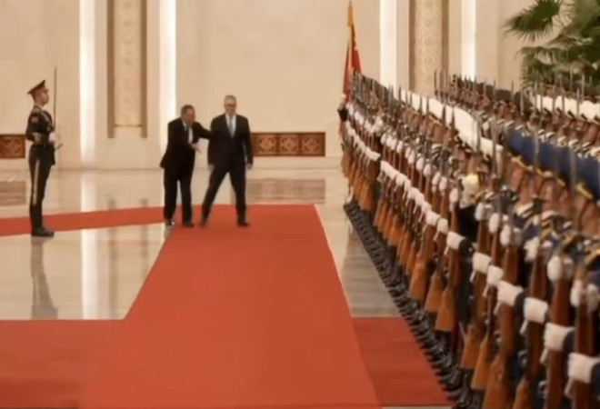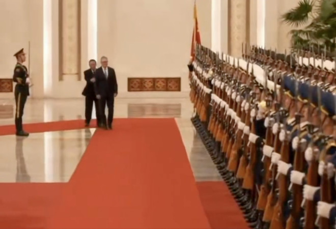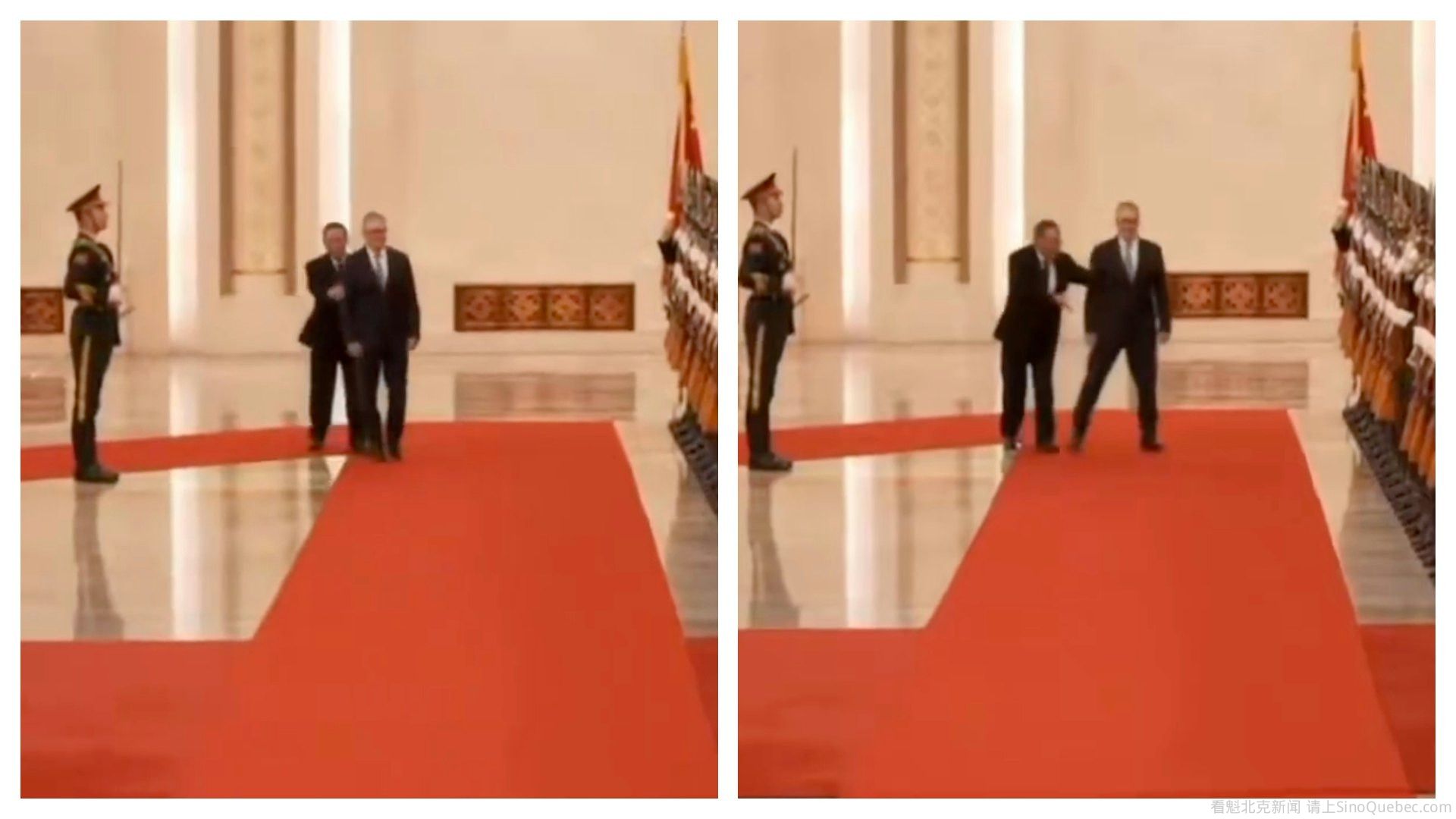 英国首相施纪贤(Keir Starmer)1月29日先后在北京与国家主席习近平及总理李强举行会面。施纪贤在与李强一道检阅仪仗队期间发生尴尬一幕,施纪贤似乎走错了位置,李强随即趋前将他扶回正确的位置。网上有声音指施纪贤这次访华神色紧张,予外界一副战战兢兢的感觉。 施纪贤与李强检阅仪仗队时发生尴尬一幕: 1月29日下午,总理李强在北京人民大会堂与来华进行正式访问的英国首相施纪贤举行会谈。 在两人一道检阅仪仗队期间发生尴尬的一幕,施纪贤似乎走错了位置,李强见状立即伸手将他扶回正确的位置。 施纪贤28日飞抵北京时,已有声音指他步行的时候战战兢兢,连手都没有摆动。 有网民就在影片下方留言指施纪贤过份紧张。 ![]() ![]() ![]() ![]() 施纪贤将在30日(周五)转往上海,继续其访华行程。 |