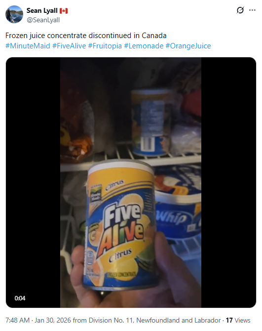 一些加拿大人从小喝到大的早餐“常客”,即将彻底从超市货架消失! 随着消费者需求下降和口味变化,Minute Maid(美汁源)宣布将停止其冷冻果汁产品线。而它几乎是目前唯一仍在加拿大市场供应冷冻浓缩果汁的大公司。 ![]() ![]() 图源:reddit 其母公司可口可乐的一位发言人证实,Minute Maid的冷冻罐装橙汁、柠檬水、Fruitopia以及Five Alive混合果汁将在今年4月前全面停产。 该发言人表示,公司将同时在加拿大和美国退出冷冻罐装果汁品类,这是“对消费者偏好变化的回应”,并将重心转向“更符合”消费者需求的产品。 ![]() 图源:X 冷冻浓缩果汁可能彻底消失 尽管可口可乐规模最大,但它并非唯一一家调整战略的果汁制造商。 不到一年前,加拿大本土果汁巨头Lassonde也悄然退出这一品类。这家公司旗下拥有Oasis、Kiju、Rougemont等知名品牌,同时还为Sobeys、Metro、Loblaw、Walmart等大型超市代工自有品牌果汁。 它甚至还拥有Old South冷冻橙汁。但现在,无论是品牌款,还是超市自有品牌,在多家零售商处均显示“无货”。 随着可口可乐的正式撤出,这意味着在加拿大销售了数十年的冷冻浓缩果汁,可能会彻底从超市货架上消失。 ![]() 图源:X 西安大略大学Ivey商学院市场营销助理教授Zhe Zhang表示:“当主流品牌和廉价代工品牌同时退出市场时,这释放了一个明确信号:问题不在于品牌或定价,而是产品本身几乎没有市场需求。” “就连最基础的产品也已经无法在市场上持续存在,这说明这个产品正在走向生命周期的终点。” ![]() 图源:reddit 为什么加拿大人不买了? 冷冻浓缩果汁诞生于二战期间,最初是为了改善美军士兵的饮食质量。而真正让它走进家家户户的是20世纪40年代末,当红明星Bing Crosby与Minute Maid的合作营销。 然而80年后,消费者的口味变了。 市场研究公司Ipsos的战略总监Emma Balment表示,果汁品牌正在失去所谓的“喉咙份额”(share of throat),而冷冻罐装果汁是被冲击得最狠的那一类。 Balment指出:“在加拿大人所有果汁消费中,冷冻浓缩果汁仅占7%,是规模最小、利润最低的果汁细分品类。” 她补充说,与十年前相比,加拿大人的生活方式发生了巨大变化。越来越多人直接喝自来水;家长对孩子的糖分摄入更加敏感;而功能性饮料(即承诺某种健康益处的饮品,如康普茶或益生菌汽水)正日益流行。相比其他饮料的不断创新,冷冻果汁几十年如一日。 “当人们想要清凉、清爽、带果味的饮料时,新产品几乎全部在争夺这个市场。果汁,尤其是冷冻果汁,被彻底‘分流’了。”她说。 ![]() 图源:reddit 有人怀念,有人没注意到它消失了 对于一些加拿大人来说,这种冷冻罐装果汁不仅是饮料,还承载着回忆。 在纽芬兰与拉布拉多省,它是圣诞节流行饮品“Slush”(一种混合了浓缩果汁、糖和烈酒的桶装鸡尾酒)的灵魂原料。 当地居民Jenna Hopkins听到消息后忍不住叹气:“哎,我们得改配方了!得想个新的替代品,这太让人难过了。” 另一位居民Marilyn O’Grady也无奈地说:“或许只能改用鲜榨果汁了吧?只能这样了,但味道肯定不一样了。” ![]() 图源:reddit 还有网友表示:“我的童年回忆啊!我得趁它们还没卖完赶紧囤货!” ![]() 但在部分地方,冷冻果汁的“消失”可能连一声水花都没有。 温尼伯Food Fare超市老板Munther Zeid直言,他早就猜到这一品类会被淘汰。 “这个品类已经垂死挣扎好几年了,”他说。“我觉得甚至不会有人注意到它消失了。” 你上一次买冷冻浓缩果汁,是什么时候? |