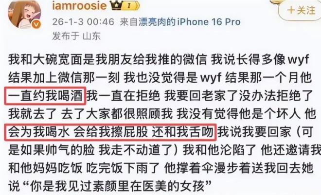 你以为“陪睡陪玩”就是娱乐圈最黑的料了? 2026年初,一个名叫司晓迪的网红,用48小时和一连串指名道姓的爆料,几乎掀翻了半个内娱。 她号称自己“睡遍30位顶流男星”,名单里包括鹿晗、林更新、檀健次这些如雷贯耳的名字。 相关话题瞬间屠榜,微博词条崩了好几个,吃瓜群众熬夜刷手机,转发量超过500万次。?但仅仅两天后,所有帖子神秘消失,公司声明她“因病胡言乱语”,明星工作室的律师函同步抵达。?这场来得快、去得更快的风暴,像一次精心策划的爆破,炸出的硝烟背后,人们才看清:那些直白粗暴的“交易”,不过是浮在水面的油污。 真正庞大而顽固的冰山,藏在深海之下,由权力、资本和沉默共同浇筑而成。 一个更隐蔽、更系统、让新人无处可逃的暗箱,正在常态化运作。 司晓迪的闹剧还没散场,另一段视频开始悄然流传。 视频里的女孩叫宇书田,29岁,中戏硕士,有留学背景。?她没爆什么香艳八卦,只是平静地讲述自己在剧组跑龙套的日常。?她说,在短剧片场,一位有背景的女主演从不背台词,对着镜头流利地念“1234567”,后期再配音。 所有工作人员必须配合她的表演。 宇书田还见过,一个年轻女演员因为拒绝了某些“暗示”,在冬天被要求反复拍跳河戏。 女孩冻得嘴唇发紫,浑身颤抖,导演坐在监视器后头,轻飘飘地喊:“情绪不对,再来一条。 ”那条河,她跳了十八遍。 没有镜头对准这些时刻,它们不属于任何光鲜的通稿,却是无数底层演员真实的每一天。 ![]() ![]() 宇书田说,在那里,等级森严。 一杯水递慢了,一个眼神没到位,都可能导致你的戏份被删光。 新人没有议价权,他们的野心和恐惧,被精准地拿捏着。 拒绝? 代价可能是永远消失。 这不是某个导演或制片人的个人品行问题,而是一套通行的“规矩”。?应采儿在18岁时就遇到过这套规矩的直白版本。 她去酒店试戏,副导演的助理直接扔来一袋现金,条件简单明了。 谢娜早年面试角色,面试官突然要求“抱一下”。 她们都选择了拒绝,并因此付出了代价——角色没了,机会黄了。 但她们算是幸运的,至少多年后还能把经历当故事讲出来。 更多的人,在拒绝的瞬间,就被那个系统静默地吞噬了,连一点水花都没有。 ![]() ![]() 这些事,圈内人心知肚明,却构成了一个“房间里的大象”。 大家看见了,但都装作没看见。 因为这套系统捆绑着巨大的利益。 一个项目,投资数千万甚至上亿,选谁当主角,用哪个配角,背后是复杂的关系网和利益交换。 演员变成了商品,演技、形象、敬业度只是基础参数,能否带来额外的“资源”,才是关键的附加值。 所谓的“资源”,可能是赞助,是人脉,甚至是某种不便明言的“服务”。 一位匿名的选角导演透露过,有时拿到手里的演员名单,旁边会标注着神秘的符号,懂的人都懂。 那不是艺术考量,那是一张张明码实价的牌。 ![]() ![]() 资本是这场游戏的终极燃料和规则制定者。?当热钱涌入,项目追求快速回报,演技和剧本就让位于流量和话题。?谁能带资进组,谁有关系搞定播出平台,谁就是“合适的人选”。 在这个过程中,导演和制片人的权力被无限放大,同时也被资本捆绑。 他们可能也需要向投资方推荐“特定的人”。 于是,一条坚固的食物链形成了:资本操控项目,项目负责人操控机会,机会拿捏着渴望成名的年轻人。?岳云鹏在综艺里讲过一段往事,他因为帮一位被逼喝酒的女艺人挡酒,第二天就被节目组找理由开除了。 你看,在这个系统里,连“善良”和“正义感”都是需要被剔除的不稳定因素。 ![]() ![]() 那么,进入这个系统的年轻人图什么? 梦想? 艺术? 或许最初是的。 但很快他们会发现,梦想需要门票,而门票的价钱,往往是尊严。?张钰很多年前就试图揭露这一切,她甚至拿出了录像带作为证据。 结果呢? 证据被质疑合法性,她本人被污名化为“疯女人”,事业尽毁。 她的遭遇,成了一个最 chilling 的警告:反抗系统的代价,你承受不起。 这导致了一种普遍的妥协与沉默。 很多人想着,熬过去,等自己红了,有了话语权就好了。 可这个“熬”的过程,本身就在不断同化他们。 有些人最终成为了系统的一部分,甚至开始维护它。 ![]() ![]() 当然,不是所有人都选择了屈服。 那些守住底线的人,走出了一条更艰难,但也更扎实的路。?戚薇早年遇到过一份赤裸的“合同”:500万,陪游澳门七天。 她撕了合同,转身离开。 之后很长一段时间,她接不到像样的工作。 但她硬生生靠着一个个小角色,磨炼演技,最终等来了属于自己的机会。?黄子韬以老板的身份,给自己公司立下铁规:所有需要艺人陪酒才能谈的合作,一律不接。 他用资本的力量,为自己旗下的年轻人筑起了一道防护墙。?谢娜在经历了早期剧组的骚扰后,毅然转向了主持赛道,最终在2026年的微博之夜,以耀眼的主持人身份回归官方大型舞台。?他们证明了,赛道不止一条。 ![]() ![]() 系统性的问题,需要系统性的审视。 近年来,从行业协会到监管部门,并非没有动作。?广电总局的“负面清单”,明令禁止污点艺人;网信办的“清朗行动”,打击网络乱象;司法部门也将娱乐圈的某些违法行为纳入重点监管范畴。?这些是外部的压力。 而行业内部,一些变化也在悄然发生。 随着视频平台的崛起和分账模式的成熟,内容为王的趋势逐渐加强。 一部小成本短剧,可能因为真实的演技和扎实的剧本突然爆红,让名不见经传的演员获得认可。