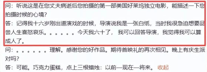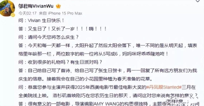 2月6日,邬君梅在社交平台发文庆生。 这位60岁的影后,独自一人在美国生活,就连生日也过得非常简单。她给自己写了首诗,写了一张生日贺卡,一一回复了远方朋友们的庆生信息。 ![]() 邬君梅的老公是一位导演,奥斯卡比邬君梅大10岁。初次见面,奥斯卡并不是让邬君梅一眼心动的类型。 个子不高、秃头,是那时候邬君梅形容这个男人的词汇。在此之前我俊美还爱过一个日本明星坂本龙一。 ![]() 邬君梅形容当时热恋的情人,是一个日本很大的明星,跟他好了两年,主动约对方吃饭。甚至当时坂本龙一还有家事,这些邬君梅都不在乎。 即便如此,邬君梅还是被无情抛弃了,这段感情让她很受伤,后来就把生活重心放在了拍戏上。 ![]() 没想到在1994年的时候,邬君梅认识了自己的丈夫奥斯卡。奥斯卡是古巴裔美国人,也是好莱坞的导演。 虽然奥斯卡头秃、还不高,算不上让邬君梅一见钟情的人,但后来还是被奥斯卡的才华吸引,两个人于1996年结婚。 ![]() 算起来,邬君梅已经结婚30年了,她30岁的时候就步入婚姻,在婚姻里的30年都没有生下一个孩子。 在丈夫病逝后,她一个人生活在美国,60岁生日也过得相当冷清。只能自己制作贺卡、写诗、恢复朋友的祝福。 ![]() 两个人刚结婚的时候,邬君梅一心打拼事业。那是她认为孩子不孩子的没那么重要,有自己的事业才有底气。 ![]() 在2022年之前,邬君梅都是高产演员。不管是好莱坞电影、还是国内电视剧她都不放过。 只是在2022年之后,她的作品逐渐减少,可能在那段时间里,她在照顾自己生病的丈夫。 ![]() 邬君梅生活在上海的电影世家,她的母亲朱曼芳是老牌演员。当年演过《与魔鬼打交道的人》,也是红极一时的大美人。 ![]() 邬君梅的长相,很符合东方很美。即便是在结婚后也铆足了劲搞事业,结婚多年才回过神来想要生孩子。 ![]() 那时候邬君梅已经成了高龄产妇,想要备孕的时候怎么都不成功。甚至为了顺利怀上孩子,她还跑了很多医院,尝试着做了9次试管。 ![]() 邬君梅迫切的希望和丈夫生个孩子,一次次的做试管让她压力很大。后来还是丈夫劝她,不行就放弃吧,两个人相依相守就够了。 ![]() 丈夫对她非常宠爱,婚姻里邬君梅很幸福。她也层幻想着两个人可以相伴到来,可总有意外打破生活的平静。 ![]() 奥斯卡生病后,邬君梅退掉工作,一直陪在丈夫身边。 在那近乎隐退的3年里,邬君梅都在陪着丈夫和病魔作斗争,可终究丈夫奥斯卡还是走了,留下了她一个人。 ![]() 邬君梅60岁了,身边没有子女,平日里的生活非常冷清。 也只有在剧中,她才能体验到做母亲的感觉。2025年播出的电视剧《六姊妹》,邬君梅饰演了一个底层母亲。 ![]() 一开始对她这个美籍华裔演中国底层母亲的角色,很多网友都保持质疑,可没想到邬君梅真的把那种悲痛和坚韧演活了。 ![]() 这一生,她没有子女,只有在剧中体验到了做母亲的感觉。丈夫离世的痛、女儿出嫁的哭戏,都让人痛彻心扉。 ![]() 丈夫病逝后,邬君梅身边连个说话的人都没有。唯一幸运的就是她还有一位老母亲,她的母亲朱曼芳85岁了,面容慈祥很富态。 ![]() 朱曼芳八十多岁了,满头的白发、脸上有不少老年斑,看得出来年轻时候是个美人。 邬君梅的眉眼,和母亲的相似度很高,他们的眼睛、鼻子、嘴巴都非常相似。邬君梅每周都会陪母亲聚餐,陪着老母亲聊天。 ![]() 邬君梅没有子女,丈夫也去世了,母亲就是她唯一的精神支柱, 朱曼芳也很乐观,即便是上了年纪也把自己打扮的很优雅,头发梳的一丝不苟、出门会抹口红,精致又洒脱。 |