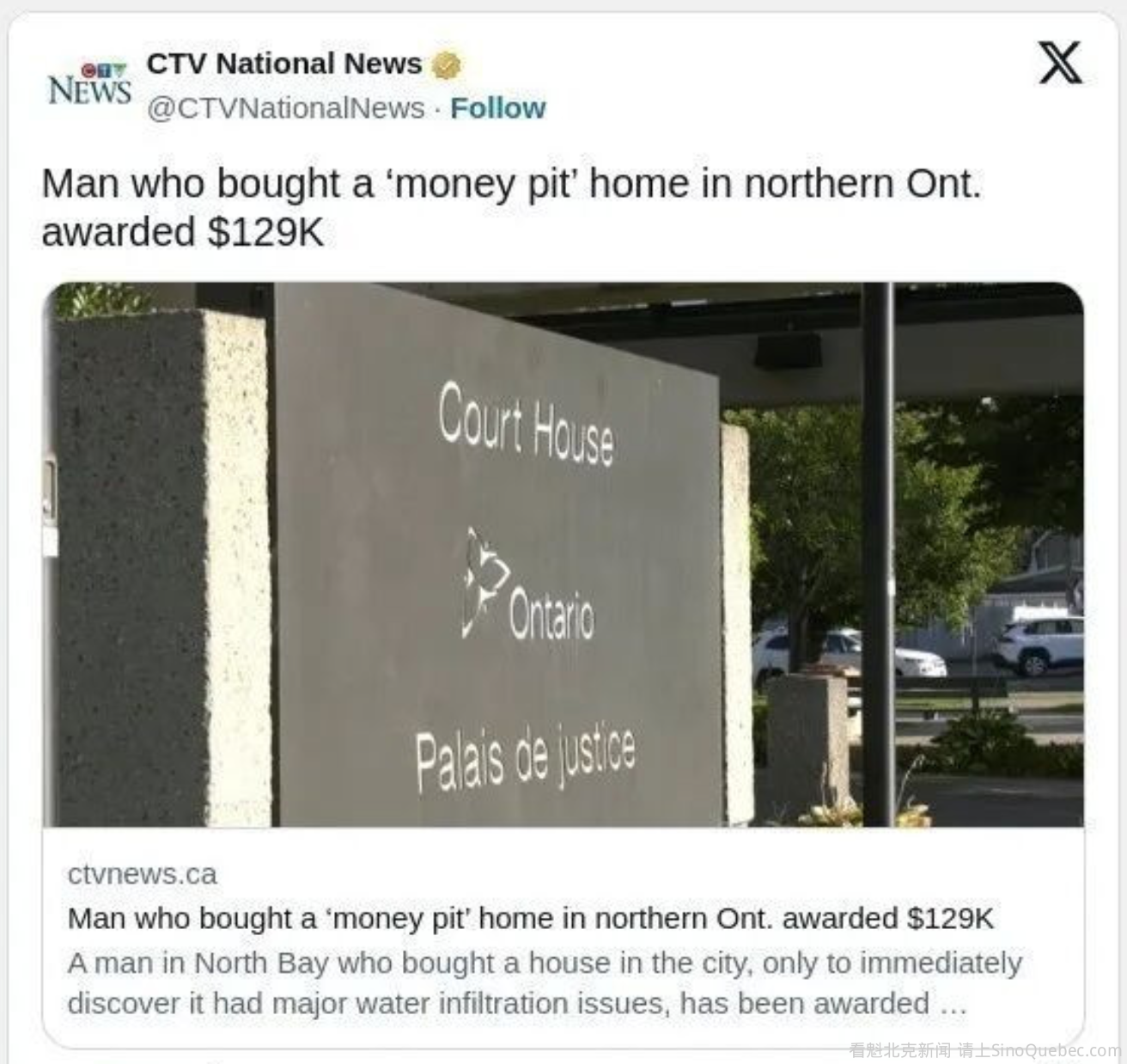 加拿大安省北湾市(North Bay)一名男子购买新房后,立即发现房屋存在严重漏水问题。安大略高等法院法官近日裁定,该男子可获得129,000加元赔偿,同时他还与房屋验房师达成庭外和解,获得10,000加元补偿。 买房即遇漏水 根据CTV的报道,该男子于2019年1月购买房屋,并在5月正式入住。法庭判决书显示,他搬入当日就注意到地下室娱乐室的电壁炉运行异常过热。5月3日,搬家公司将钢琴搬入地下室时,水从地板下渗出,“钢琴移动到哪里,水就渗到哪里”。 随后,买家被迫进行大规模维修,包括拆除甲板、挖掘房屋北侧、撑起房屋、更换西北及东北角的水泥块、拆除地下室娱乐室和洗衣房,拆除墙板、防潮膜和隔热层,仅留下木龙骨。 维修期间还发现霉菌,需要安装排气管排除“污浊空气”,噪音与持续作业导致买家精神压力和生活不便。 维修总费用为119,595.75加元,其中15,594.88加元由保险覆盖,其余由买家自行承担。施工承包商证实,房屋基础存在裂缝,深达地下,裂缝上端宽度可容手指伸入;窗户明显受压,甲板需全部拆除重建。 卖家否认知情 但是,房屋前业主否认知晓任何漏水问题。 法庭判决称:“被告坚持在其拥有房屋期间地下室未出现渗水。她否认知晓地下室窗户未平整,也否认拆除过大面积墙板、防潮膜或隔热层,对基础裂缝毫不知情”。 前业主的父亲,自称是经验丰富的手工活工人,曾在女儿购房后进行少量修缮,但从未发现漏水或裂缝。 买家则提出,2015至2017年间地下室曾进行过大规模装修,远超过卖家所承认的范围。 法院认为,卖家在房屋上市时声称“保养良好,可拎包入住”,但事实上的长期严重漏水问题,使这一描述不实、误导性明显,因此构成虚假陈述。 法官判决卖家责任 法官裁定,卖家对房屋漏水问题“知情或故意忽视”,即使无意欺诈,其陈述至少属于过失。 法官写道:“根据概率衡量,我无法接受她对娱乐室与洗衣房角落的漏水问题全然不知。如果她确实不知,那也是故意视而不见”。 最终,法院认定卖家应对买家损失负责,判赔129,000加元,同时买家已通过与验房师的庭外和解获得额外10,000加元赔偿。 |