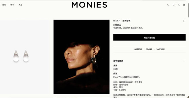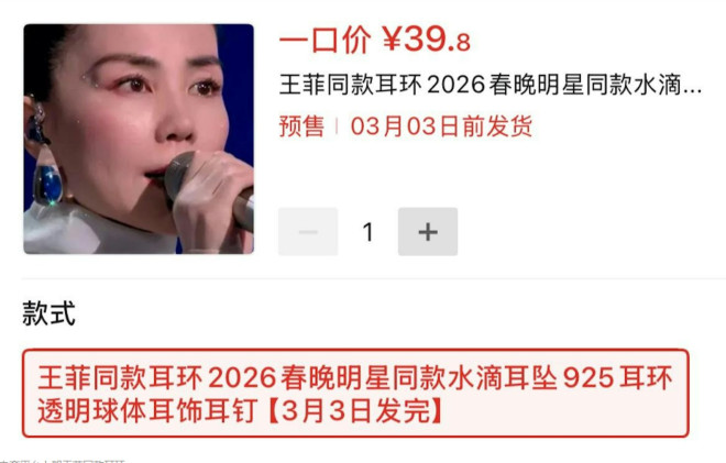 周一(16日),着名歌手王菲第六度登上央视春晚舞台,演唱《你我经历的一刻》,惊艳全场。与此同时,她佩戴的一对透明水滴造型耳环迅速冲上社交平台热搜,被网民戏称“洗衣凝珠耳环”,引发网民疯狂讨论耳环造型、品牌与价格。 ![]() 今次已经是王菲第六次登上央视春晚。(影片截图) 据了解,这对耳环出自丹麦小众奢侈品牌MONIES,名为Nia水滴耳环,官方售价240欧元(约合人民币1962元)。值得一提的是,2025年蛇年春晚,王菲同样佩戴MONIES的“虾片耳环”出圈,一度引爆饰品市场,成为当年爆款单品。王菲与MONIES的“缘分”再度被网友调侃为“春晚专属CP”。 《极目新闻》报道,周二(17日)凌晨,MONIES品牌官网已悄悄更新产品页面。在该耳环的描述栏,原有文字已被修改为“Faye Wong(王菲英文名)戴的Nia水滴耳环”,直接点名王菲,借春晚热度进行品牌宣传。 ![]() MONIES品牌官网已悄悄更新产品页面。(网页截图) ![]() 多家电商平台已上架“王菲同款水滴耳环”,售价低至39.8元人民币。(网页截图) 周二中午,多家电商平台已上架“王菲同款水滴耳环”,售价低至39.8元人民币。不过这些多为彷款或预售产品,标注预计3月3日前发货,引发网民“真假难辨”的讨论。 从“虾片耳环”到“洗衣凝珠耳环”,王菲连续两年春晚佩戴MONIES单品出圈,不仅让这个小众丹麦品牌收获巨大曝光,也再度证明她的舞台造型总能引领饰品潮流。网友直呼:“王菲一戴,什么都火!” |
