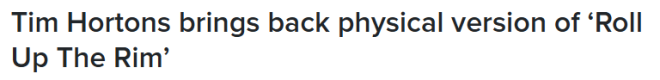 加拿大国民咖啡品牌Tim Hortons宣布,从下周开始,将在年度 “Roll Up The Rim” 活动中重新推出传统实体卷边纸杯。 ![]() ![]() 图源:Global News 公司周三表示,2026年版本的活动将于2月23日正式启动,这也是该促销活动举办的第40周年。这次经典纸杯“卷杯边揭奖”的回归,结束了近年来仅限电子版参与的做法。数字化形式始于新冠疫情期间。 Tim Hortons表示,由于顾客反馈强烈,希望恢复传统玩法,公司决定在保留App电子版本的同时,重新推出实体纸杯。公司确认,未来的活动中,实体卷杯方式将成为长期保留项目。 ![]() 图源:CityNews Tim Hortons 总裁 Axel Schwan 在声明中表示:“几十年来,每到春天,加拿大人都期待在 Tims 咖啡杯上卷起杯边看是否中奖。我们再次意识到,这个标志性的传统对顾客来说意义重大……不仅仅是今年,而是未来很多年。” 活动时间与参与方式本次活动将从 2月23日持续至3月22日。实体杯卷边数量有限,售完为止。顾客还可以通过 Tims 手机应用程序获得电子卷边机会。获得方式包括: