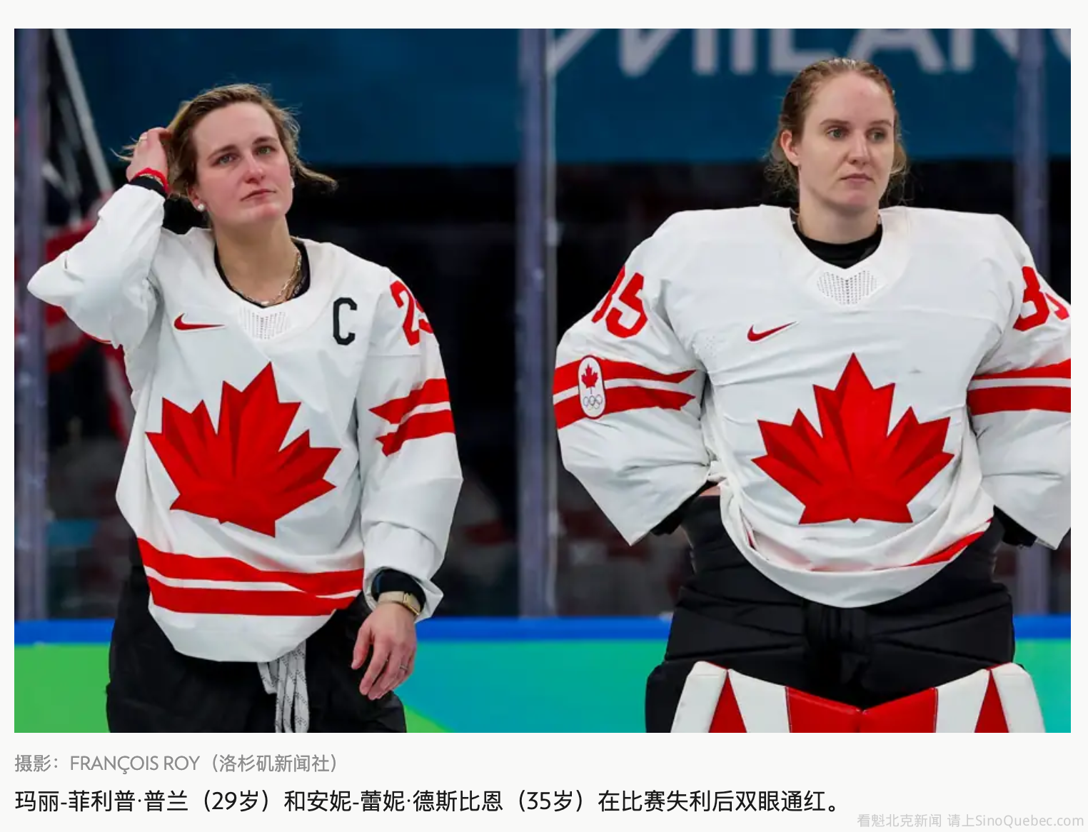 美国女子冰球队的Megan Keller 在加时赛中攻入致胜一球,帮助美国女队以 2-1 战胜加拿大队,夺得米兰-科尔蒂纳冬奥会金牌。这个结果对于加拿大人来说非常遗憾,因为加拿大队在决赛中曾经以1比0领先到最后两分钟。加拿大女队此前对阵美国队遭遇七连败,特别是小组赛上因为队长Marie-Philip Poulin受伤缺阵,0比5输给美国队。 来自魁省Beauceville的加拿大女子冰球队队长Marie-Philip Poulin是队中核心,她以27场比赛刷新了加拿大女子冰球运动员奥运参赛场次纪录。 Montreal Victoire队门将、来自魁北克省的Ann-Renée Desbiens在决赛中成功扑救了31次射门,但在加时赛进行到 4:07 时,未能挡住 Keller 的进攻。 加拿大的首粒进球是New York Sirens队的前锋 Kristin O’Neill攻入,她在队友Ella Shelton因犯规受罚、加拿大队处于少打多的情况下,接到来自蒙特利尔的队友 Laura Stacey 以及 Renata Fast 的助攻,射门成功。 在常规时间还剩 2:04 时,美国队在空网状态下(美国队撤下门将增加进攻手),五次参冬奥会的美国队长 Hilary Knight 通过折射破门,将比赛拖入加时。 |