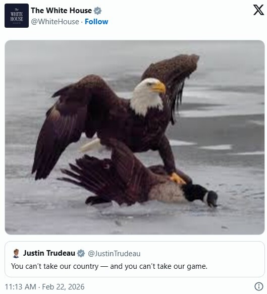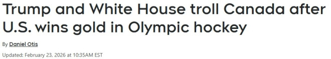 美国队在奥运冰球金牌赛击败加拿大后,白宫和总统特朗普随即在社交媒体上高调炫耀,并发布嘲讽加拿大的内容,引发争议。 ![]() 周日,美国队以2比1加时击败加拿大后不久,白宫官方X账号发布了一张图片:一只秃鹰得意地站立着,爪子踩在一只无助地躺在冰面上的加拿大鹅身上。这两种鸟分别是美加两国的象征。 ![]() 图源:X 周一清晨,特朗普又在其Truth Social平台上发布了一段视频。这个长约一分钟的AI生成视频显示,特朗普身穿海军蓝西装和标志性的红色领带,在冰场上与加拿大队对阵,不仅进球,还击打加拿大球员。 ![]() ![]() ![]() ![]() 图源:truthsocial 这两则帖子都是针对前总理杜鲁多的回应。在特朗普曾威胁吞并加拿大,以及加拿大在去年NHL“四国对抗赛”中战胜美国后,杜鲁多曾于2025年2月在X平台上发文称:“你无法夺走我们的国家——也无法夺走我们的比赛。” 尽管美国方面在社交媒体上进行嘲讽和炫耀,加拿大仍然是世界上最成功的男子国际冰球队。 自1920年以来,加拿大男子冰球队已赢得9枚奥运金牌,是历史最多的一支球队。最近一次夺冠是在2014年俄罗斯索契冬奥会,当时美国队在铜牌赛中输给芬兰。 在本届冬奥会之前,2014年也是NHL球员最后一次参加奥运会。 周日的胜利只是美国男子冰球队历史上的第三枚奥运金牌,也是自1980年纽约普莱西德湖冬奥会以来的首次夺冠。 美国男子冰球队最近一次获得奥运奖牌是在2010年温哥华冬奥会,当时他们在金牌赛加时输给加拿大,获得银牌。 在1991年解体之前,苏联男子冰球队曾赢得7枚奥运金牌,位居历史第二,超过美国。此外,前苏联和俄罗斯运动员还分别在1992年和2018年获得奥运金牌。 加拿大女子冰球队今年输给了美国,但加拿大队仍然是奥运历史上最成功的球队。 自1998年日本长野冬奥会引入女子冰球项目以来,加拿大女子队已赢得5枚金牌。 美国女子冰球队今年获得了历史上的第三枚金牌,是唯一另一支赢得女子冰球奥运金牌的国家。 在X平台上,加拿大总理卡尼(Mark Carney)的回应则显得更加克制。 他写道:“祝贺你们经过艰苦拼搏获得银牌。你们让国家感到自豪。” |