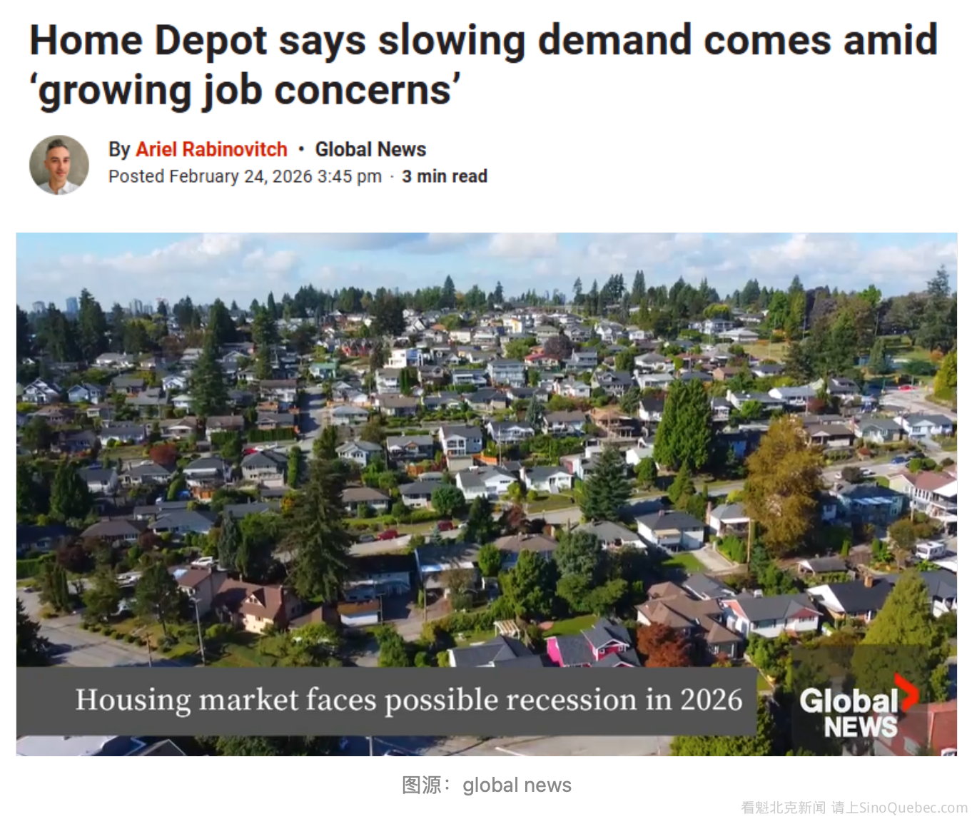 Home Depot表示,由于消费者在不确定的经济和就业环境下保持谨慎态度,并推迟房屋建设和装修项目,其部分商品的需求正出现“明显下降”。 该公司预计,这一趋势将持续贯穿整个2026年。 周二,这家上市公司在与投资者和分析师的电话会议上讨论了最新财报细节。根据法律规定,Home Depot等上市公司必须定期报告业绩,以保持对股东的透明度和问责制。 公司首席财务官Richard McPhail表示:“自2023年以来,房屋交易量一直处于历史低位,这显著减少了与买卖房屋相关的各类装修项目和采购需求。” 他补充说:“我们的客户还告诉我们,他们对整体经济的不确定性感到担忧,包括通货膨胀、日益增长的失业顾虑以及更高的融资成本。” 在截至2026年2月1日的三个月内,Home Depot 的销售额较去年同期下降了3.8%。不过公司指出,去年的统计周期多出了一周的销售时间。 Home Depot在全球拥有超过2300家门店,其中绝大多数位于美国,公司总部也设在美国,同时在加拿大和墨西哥设有数百家门店。 美国总统唐纳德·特朗普的关税政策,也让企业和消费者对经济前景感到不安,市场担心贸易战可能进一步升级。 加拿大央行去年12月报告称,许多加拿大企业已经暂停或放缓招聘计划,等待经济形势更加明朗。而这种明显改善,可能要等到《加拿大—美国—墨西哥协定》(CUSMA)更新或被替代后才会出现。 这意味着,如果消费者担心工作稳定性,他们更可能推迟购房或装修计划。根据Equifax的数据,加拿大房贷债务已接近2万亿加元,已购房者可能更专注于支付房贷等账单,而非进行装修。 Home Depot预计经济形势短期内不会改善,这意味着今年剩余时间内,公司增长可能非常温和,甚至停滞。 McPhail表示:“展望2026财年,我们预计这些压力将持续存在,因为我们尚未看到房地产活动出现转机的催化剂。” 公司预计,其可比销售额增幅将在持平至增长2%之间。 在电话会议上,当分析师询问为何给出如此疲软的年度预期时,首席执行官Ted Decker回应道:“如果市场表现不佳,可能会使我们处于增长预期的下限。核心驱动因素就是消费者持续的不确定性。 客户告诉我们,这是他们不愿投资(尤其是大型项目)的首要原因。这与消费者信心、就业形势、整体物价水平以及经济承受能力息息相关。” 加拿大按揭及住房公司(CMHC)在2026年展望报告中也预计,受全球贸易战和美国关税引发的经济不确定性影响,加拿大房地产市场今年将保持“低迷”。 报告同时指出,市场活动预计要到2027年末至2028年才会回升。 |