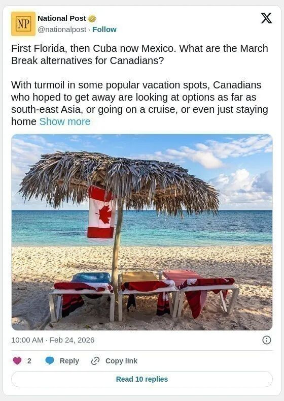 先是佛州,再是古巴,现在轮到墨西哥,加拿大学生春假出行连连受阻。 周日,墨西哥军方击毙一名大毒枭之后,多地爆发汽车纵火和与安全部队的枪战,加拿大安省省长Doug Ford也于周一呼吁旅行者:“尽量不要前往墨西哥”。 加拿大政府于昨天对墨西哥旅行发出最新警告,避免前往一些地区非必要旅行。 ![]() ![]() 这起暴力事件正值加拿大学生春假(March Break)临近,给计划前往墨西哥海滩度假的加拿大游客带来新的安全风险。包括度假热门地巴亚尔塔港(Puerto Vallarta)在内的多个州,发布了“就地避难”命令。加拿大航空取消了周日飞往该地的航班,并表示将密切关注局势,确保在安全时尽快让旅客返回。 ![]() 根据《国家邮报》的报道,TripCentral.ca 总裁Richard Vanderlubbe表示:“这一连串事件真的让人惊讶——美国的关税战、古巴局势,然后又发生了这种暴力事件”。他指出,加拿大游客在墨西哥和古巴的行程计划正受到严重影响。 此前,由于美国对古巴的燃油限制措施,加拿大航空宣布2月10日至4月底暂停所有飞往古巴的航班,影响了TripCentral约2,600个预订。随着春假临近,游客寻找替代目的地变得紧张且价格高昂。Vanderlubbe表示:“一旦古巴被取消,大家集中寻找其他目的地,价格瞬间飙升,旅游购买就像参加‘现场拍卖’”。 尽管墨西哥局势动荡,但一些旅游地仍在接受预订。 Flight Centre周一在巴亚尔塔港(Puerto Vallarta)、马萨特兰(Mazatlan)和瓜达拉哈拉(Guadalajara)的预订量不足100个,但坎昆(Cancun)和Riviera Maya仍有部分预订。 Flight Centre发言人Amra Durakovic指出,坎昆与事发地巴亚尔塔港相距超过30小时车程,两地局势独立,坎昆旅游区设有国民警卫力量已有一年,游客仍按计划前往。 对于希望“重新规划”春假行程的游客,专家建议,可考虑多米尼加、秘鲁、哥斯达黎加,或东南亚国家如泰国、柬埔寨、印度尼西亚、越南,以及加勒比地区的伯利兹和哥伦比亚等地。 其他选择包括ABC群岛——阿鲁巴、博内尔和库拉索,专家表示:“虽然价格会更高,但如果你愿意多花点钱,有很多精彩纷呈的地方值得探索”,其中包括气候逐渐温暖的葡萄牙,“葡萄牙是春季旅行的绝佳目的地,可以避开夏季旅游高峰”。 另外,邮轮行程也受到欢迎,提供在海上相对安全的度假体验。 除了在墨西哥巴亚尔塔港实施居家避疫令外,加拿大还在2月份发布了旅行警告,敦促前往牙买加、巴哈马、特立尼达和多巴哥以及特克斯和凯科斯群岛的旅客“高度谨慎”,因为这些地区的犯罪率很高,包括牙买加的暴力犯罪,尤其是在旅游区以外的地区。根据旅行警告网站的说法,当存在“某些安全隐患或情况可能迅速变化”时,就会发布这些黄色警告。 印度尼西亚和哥斯达黎加也发布了类似的警告,并附有区域性旅行建议。 与此同时,巴巴多斯、波多黎各、葡萄牙、圣基茨和尼维斯、安圭拉、蒙特塞拉特、圣马丁、多米尼加共和国、英属维尔京群岛、开曼群岛、百慕大和库拉索等气候较为温暖的目的地,在加拿大政府旅行建议网站于周一的最新更新中,均带有绿色对勾标记——“采取正常的安全防范措施”,这意味着“采取与在加拿大类似的防范措施”。 2月4日,加拿大政府对委内瑞拉发布了“避免前往”的旅行警告,“原因是安全局势加剧、政治和经济局势不稳定、暴力犯罪率高、存在任意拘留的风险”以及基本生活条件下降。 ![]() 大家计划春假旅行之前,请浏览加拿大政府的旅行警告:https://travel.gc.ca/travelling/advisories |