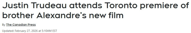 加拿大前总理杜鲁多(Justin Trudeau)周四晚现身多伦多电影放映活动,支持弟弟亚历山大·杜鲁多(Alexandre Trudeau)首部剧情长片《Hair of the Bear》的首映。 这部电影由亚历山大·杜鲁多与James McLellan联合执导,是一部加拿大生存惊悚片。这也是亚历山大首次涉足剧情电影领域,此前他多年一直拍摄国际政治题材纪录片。 ![]() ![]() 图源:CTV News 亚历山大在接受采访时表示,他和哥哥平时很少讨论电影,“我们见面时更可能会摔跤打闹”。 虽然杜鲁多曾偶尔参与影视项目,包括在2007年CBC电视电影《The Great War》中担任主演,但亚历山大表示,两人目前没有合作拍电影的计划。 亚历山大还透露,自去年离开政坛以来,杜鲁多“非常开心”,正在享受更平静的生活,并与流行歌手女友凯蒂·佩里(Katy Perry)“重新坠入爱河”。 他说自己已经见过凯蒂·佩里,并为哥哥感到高兴。 “他现在非常快乐。他享受着可以自由购物、修理家里的东西,以及再次约会、再次恋爱的生活。他过得很好,而且他还年轻,完全可以继续享受人生,”亚历山大说。 他还表示,杜鲁多是在两人关系变得认真时,将凯蒂·佩里介绍给家人认识。 这对情侣自去年夏天在蒙特利尔被拍到一起共进晚餐后,便成为国际媒体关注的焦点。近日,有媒体报道称,有关凯蒂怀孕的传闻并不属实,并称两人目前正处于一种“蜜月阶段”,享受彼此陪伴,以及与各自此前关系中已有的孩子共同生活的时光。 ![]() 图源:X 亚历山大说:“他认为让她认识家人很重要,我们都很高兴见到她。” 电影《Hair of the Bear》在曼尼托巴省拍摄,由演员Malia Baker饰演一名患有焦虑症的少女,她被送到偏远小屋与祖父(由Roy Dupuis饰演)一起生活。当两人遭遇不速之客威胁时,她必须拼尽全力求生。 影片还由Robert Naylor和Jonathan Lawrence饰演一对走上不同人生道路的兄弟。 在放映后的问答环节中,杜鲁多开玩笑问道:“电影里关于一个好兄弟和一个坏兄弟的设定,是不是有什么特别含义?”引发现场观众大笑。 亚历山大回应说,他只是想探讨两个兄弟因不同道德观而产生分歧的复杂关系。 亚历山大还表示,他并不指望哥哥出演自己的电影。 “我们有个规则,就是不会互相强求,所以我不会强迫他来演电影,”他说。 不过,他也没有完全排除未来合作的可能性,并开玩笑说,杜鲁多最有可能出演动画片。 “也许我会让他来配音。” |