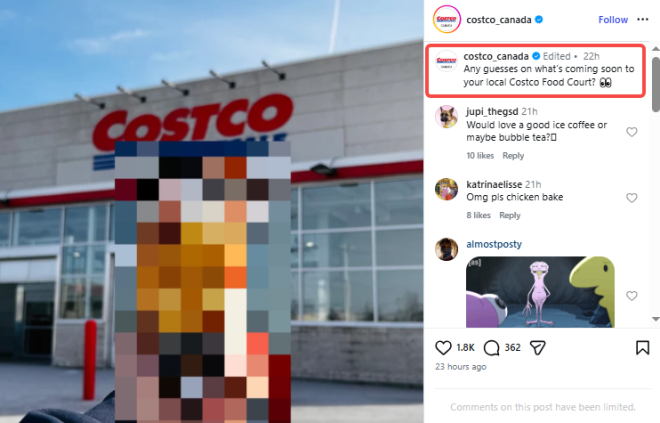 近日,加拿大Costco官方账号突然在社交媒体上发布了一条神秘预告。 配图是在Costco门店前,手里拿着被打码的新品,而配文只有一句:“猜猜即将来到你当地Costco美食广场的新品是什么?” ![]() 图源:Instagram 短短一句话,瞬间引爆评论区。 不少网友立刻开始疯狂猜测:新饮品?新甜点?还是全新的热食? 但在众多猜测中,有一个名字被疯狂刷屏——Chicken Bake。 评论区很快变成了大型“Chicken Bake请愿现场”。大量网友几乎是清一色留言: “求求了,把chicken bake带回来!” ![]() ![]() ![]() ![]() ![]() ![]() ![]() ![]() ![]() ![]() 其次,另一款被不少网友点名的美食是炸鸡翅: ![]() ![]() ![]() ![]() ![]() ![]() ![]() 还有一群网友则表示,他们更想看到的是咖啡: ![]() ![]() ![]() ![]() ![]() 然而,就在大家疯狂猜测的时候,一位Reddit用户突然在评论区爆料:“我从内部人士那里听说,(新品)是焦糖布朗尼圣代。” ![]() ![]() 图源:reddit 紧接着,另一位自称是Costco员工的网友也跟着补充:“全新的焦糖布朗尼碎圣代来啦!我的仓库已经开始收到冷冻布朗尼碎的货了。” ![]() 如果消息属实,这意味着Costco美食广场很可能正在准备推出一款新的甜品。你期待吗? |