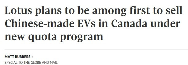 中国制造电动车,终于要大规模进入加拿大了? 英国跑车品牌Lotus,正准备成为首批“吃螃蟹”的企业之一,计划把在中国武汉生产的电动SUV引入加拿大市场。 但问题是:这款车售价高达六位数,并不是大家期待的“便宜中国电车”。 ![]() ![]() 图源:lotusvancouver 英国跑车品牌Lotus目前在加拿大仅以较低销量销售一款车型,该公司正计划成为首批在联邦政府新进口配额制度下,将中国制造电动车引入加拿大的企业之一。 这个以轻量化高性能跑车闻名、拥有一批忠实粉丝的品牌,如今隶属于中国汽车巨头吉利(Geely),该公司同时还拥有Volvo和Polestar。 Lotus计划引入加拿大的车型是Lotus Eletre,这是一款在中国武汉生产的纯电动“超级SUV”(Hyper SUV)。据Lotus Cars Americas总裁兼首席执行官Massimiliano Trantini介绍,该车型已出现在经销商网站上,预计将于2026年第三季度进入加拿大展厅。 Trantini在发给《环球邮报》的电子邮件中表示:“我们的Eletre已经完成加拿大认证(符合道路使用标准),我们很快将举行正式发布活动。” 该车型售价预计将达到六位数水平。车内采用苏格兰Bridge of Weir制革厂提供的皮革内饰,最大马力可达905匹。显然,Lotus Eletre并不是许多加拿大人所期待看到的那类“平价中国电动车”。 今年1月,总理卡尼与北京达成“战略伙伴关系”,加拿大将对一定数量的中国制造电动车将关税降至6.1%。这相比2024年加拿大与美国同步对所有中国电动车征收的100%关税大幅降低。作为交换,北京方面也降低了对部分加拿大农产品和食品的关税。 在实施100%关税之前,包括Volvo、Polestar和Tesla在内的汽车制造商曾从中国向加拿大出口汽车。在关税实施后,这些企业将面向加拿大市场的生产转移至欧洲等地区。 在这一新政策实施的第一年,即截至明年2月底,将允许49,000辆中国制造电动车以较低关税进入加拿大。 根据加拿大全球事务部一位发言人的说法,截至3月12日,尚未发放任何进口配额许可。 多家在中国生产电动车的品牌都对这一配额制度感兴趣,包括中国第三大汽车制造商奇瑞(Chery)。 降低关税的部分初衷,是增加价格可负担的电动车供应。政府表示,到2030年,约70,000辆中国制造电动车将通过该配额制度进入加拿大,其中一半的进口价格需在35,000加元或以下。 不过,Lotus Technology Inc.主要定位于高端市场。 Trantini表示:“加拿大高端消费者对SUV和豪华车型有强烈偏好。我们的Eletre超级SUV非常适合这一市场。” 较低的关税使Lotus能够将Eletre在加拿大的计划零售价降低约50%,公司希望借此实现快速增长。 目前,Lotus在加拿大共有六家经销商,并计划根据市场需求继续扩展。“我们预计随着进入市场,需求将迅速增长,因此将相应扩大经销网络,”Trantini补充道。 目前在加拿大唯一在售的Lotus车型,是在英国Hethel工厂生产的燃油跑车Emira,售价约14万加元。Trantini未透露该车型在加拿大的销量,但表示“市场反应令人鼓舞,为全面推进电动车战略提供了信心”。 不过,Eletre在加拿大市场可能面临挑战。去年电动车销量明显下滑,同时市场上已经有大量高端电动SUV竞争对手,包括BMW、Mercedes-Benz、Audi、Rivian、Tesla、Volvo、Porsche和Cadillac等品牌。 此外,Lotus在大众消费者中知名度并不高,主要为F1赛车迷和汽车爱好者所熟知,这些人欣赏其以驾驶体验为导向、轻量化、低马力的跑车传统。而作为品牌首款电动SUV,Eletre既不轻量,也不低功率。 ![]() 图源:Globe and Mail 该车型的推出,也是在Lotus去年宣布将裁减其英国总部约三分之一员工之后。该总部位于Hethel,自1966年以来一直是公司基地。 Lotus的中国业务主体Lotus Technology Inc.(股票代码:LOT-Q)计划收购其英国业务100%的股份。该公司报告称,截至2025年前九个月,其全球交付量为4,612辆。 这一数字较2024年同期下降了40%,公司将其归因于关税影响以及升级车型的分阶段交付。 |