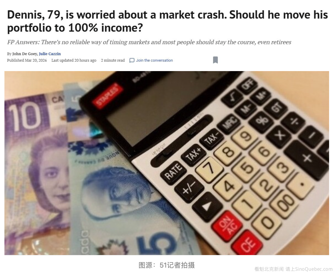 在全球市场剧烈波动的背景下,一位79岁的加拿大老人近日发出投资疑问:股市已经开始下跌,现在还要不要继续持有股票?是否应该把投资全部撤出? 这位投资者名叫Dennis,他称自己目前79岁,身体状况良好,退休储蓄中大约有30%通过共同基金投资在股票市场。但近期北美股市的表现,让他感到不安。尤其是加拿大经济基本面并不强劲。一旦市场大幅回调,恢复周期可能会超过自己的资金需求周期,因此他开始考虑是否应该将资产全部转为以收益为主的保守投资。 最新情况显示,加美股市正在连续走弱。加拿大S&P/TSX指数近期已连续第三周下跌,并且自中东冲突爆发以来累计跌幅超过7% ;美国方面,标普500指数、纳指和道指也连续下跌,市场甚至可能迎来第四周连跌 。更值得注意的是,标普500已经跌破关键技术位,市场内部超过80%的股票处于下行趋势 。 专家回应:别轻易“清仓”,大多数人做不到精准逃顶 Dennis的担忧可能是很多投资者此刻的真实写照。但专家给出的建议却相当“冷静”:不要因为市场波动就做出极端调整。 《金融时报》理财专家表示,与其“预判市场会不会下跌”,不如回到一个更根本的问题:你的风险承受能力是否真的发生了变化?如果没有,那么就不应该因为短期波动而彻底改变投资策略。市场的涨跌很难精准预测,大多数人也无法做到在高点退出、低点再进入。 从配置来看,30%的股票比例其实并不算高,甚至对于很多长期投资者来说还略偏保守。 专家指出,即使是79岁的投资者,如果身体健康,仍可能拥有10年以上的投资周期,因此没有必要过早完全退出股市。 更现实的做法是:利用已有的70%稳健资产来满足生活开支,同时给那30%的股票投资足够时间去恢复。如果市场真的出现回调,这种结构反而更有缓冲空间,而不是在下跌中“被动割肉”。 对于普通投资者来说,这两天的市场下跌确实容易让人焦虑。看到指数连续走低,很容易产生“是不是该赶紧撤”的想法。但也正是在这种时候,最容易做出错误决策。 专家最后引用了一句经典投资格言:“市场非理性的时间,可能比你能坚持的时间更长。” 不过他也补充说,以Dennis目前的资产配置和状况来看,即使市场出现波动,也完全有能力“扛过去”。 (本文内容仅为信息分享与市场解读,不构成任何投资建议或买卖依据,投资需结合个人情况谨慎决策。) |