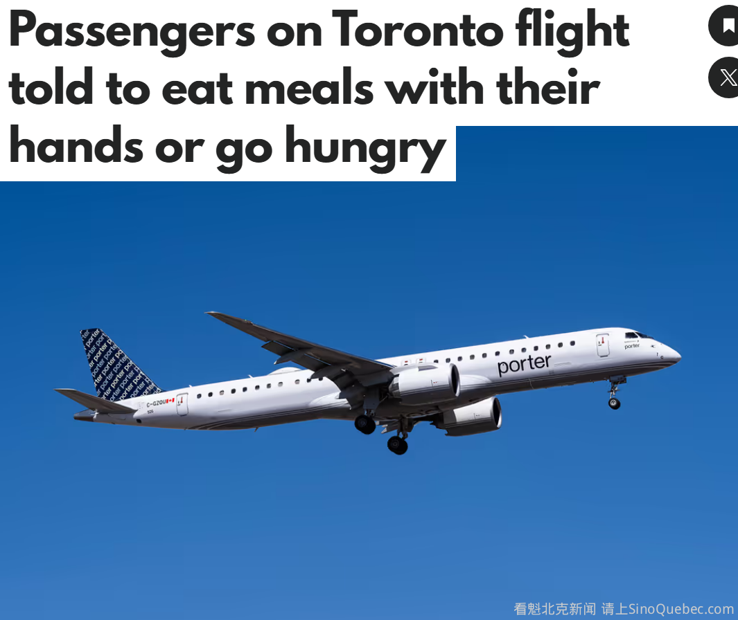 一趟从哥斯达黎加利比里亚飞往多伦多的航班上,乘客们被一个“离谱”情况震惊了,由于航空公司用完了餐具,他们无法吃饭。 图源:blogTO 这起事件发生在Porter Airlines航班PD784上。该航班于3月19日从Daniel Oduber Quirós国际机场起飞,并于当晚10:30左右抵达多伦多皮尔逊国际机场。 在近5小时的飞行过程中,由于缺乏餐具,乘客们无法进食。 机上的许多乘客,包括一些刚结束3月春假出行的家庭,对这一情况都感到非常惊讶。 一位带着三个孩子回家的母亲Alina Katsev回忆了当时的情况:“空乘走到我们这一排时,我们点了芝士拼盘和方便面,结果却被告知只剩一份芝士拼盘了,而且没有餐具。” 她表示,机组人员曾尝试寻找餐具,但最终回来告知一份也没有,因此无法提供他们点的餐食。 Porter航空提供机上付费餐饮服务。Katsev指出,虽然还有米饭等其他选项,但因为这些都需要用到餐具,所以同样无法供应。 更让她不满的是,整个过程中,航空公司没有对此事作出任何道歉。当她询问原因时,得到的解释是:“去程航班已经把所有餐具用光了,回程就没有剩下的了。” 对此,Porter航空发言人向媒体证实,该航班确实因疏忽导致机上餐具数量少于通常的供应量。 不过他们表示,在餐具用完后,乘客仍然可以选择其他无需餐具的食物,例如三明治、芝士饼干拼盘和各种零食。 航空公司强调,客户体验始终是其首要任务。该司最近还被评为北美最佳航空公司之一。 发言人补充称,未来将增加机上餐具储备,以避免类似情况再次发生。