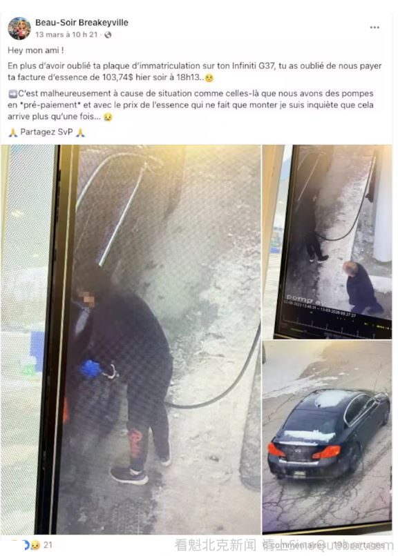 魁北克加油站业主们自本月初以来不得不加倍警惕,甚至要求顾客先付款后加油,因为油价上涨的同时,盗油案件也在激增。 3月15日,一对男女在他位于 Lanaudière 地区 Saint-Lin–Laurentides 的 Ultramar 加油站加满了油。他们加了51元的汽油后直接逃走,没有付款。 业主Junior Tremblay气愤的说:“真是把我气炸了!这些人根本不明白,他们偷的不是和我合作的大石油公司,而是我的小生意。亏钱的是我,而且没有人会赔我。” 他把这两名逃逸者的视频发布到自己的社交媒体上,希望能找到他们。 “从现在起,我们不再让任何顾客自己加油,全部改由员工操作。……这已经成了我们这片地区所有自助加油站的祸患。我们知道,随着油价上涨,今后情况只会越来越糟。”Tremblay 先生感叹道。 过去三周里,魁北克各地已有数十家加油站公开发布了偷油者的影像。根据 CAA 的数据,全国燃油价格在上周四已逼近每升1.70元,而一个月前还是1.28元。因此,加满一箱油的成本大约上涨了20元到25元。 “上周发生偷油事件,再加上油价上涨,我们很无奈,只能对所有顾客实行先付费后加油。”Lévis 的 Beau-Soir Breakeyville 便利店业主 Jo-Annie Le Roy-Audy 无奈地说。 3月12日,一名年轻男子加了104元的油,没有去柜台结账便直接离开。Le Roy-Audy将司机的照片发到 Facebook 上,随后得到线索并成功锁定了他。 “这整件事简直离奇得像电视剧一样。”Le Roy-Audy 女士笑着说,“我后来得知他住在隔壁村子。我过去转了一圈,结果竟然在杂货店旁边偶然看到了他的车。……一名女警联系了他,他据说会在周五来把账单付掉。这对我来说是很大的金钱损失。” 位于 Chaudière-Appalaches 一个约450人口小镇的 Relais Saint-Luc 加油站,则在15年多以来首次遭遇偷油。 店主 Luc Lauzon表示,涉嫌偷油的女子给自己的车加了64元的油。她的脸被围脖、太阳镜和帽兜遮住,车上也没有车牌。“她借口说忘了带钱包,15分钟后会回来……但我们再也没见过她。” 如何避免你的加油站发生盗窃? 设置明显可见的摄像头。 安装告示牌,注明场地受到监控。 要求顾客先付款后加油。 保持区域光线充足。 让员工能够清楚看到加油泵区域。 一旦发生盗窃,立即报警。 |