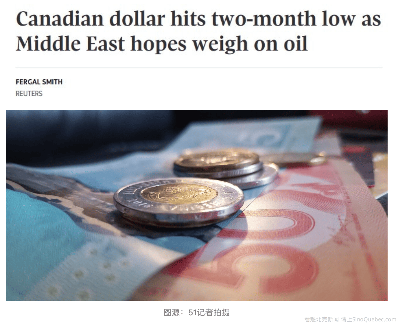 由于市场对中东冲突停火的预期升温,导致油价下跌,同时投资者也在权衡加拿大国内经济走弱的最新迹象,加元兑美元的汇率跌至两个月来的低点。 截至周四午盘,加元报1美元兑1.3835加元,约合72.28美分,创下自1月22日以来的盘中最低水平。 按最新汇率计算,1加元约合4.99人民币左右,近期在约5.00–5.05区间波动。 Convera外汇与宏观策略师Kevin Ford表示:“加元跌至两个月低点,表明内部经济放缓如今对汇率的拖累,已超过能源贸易条件改善通常带来的支撑。” “在加拿大央行上周释放出谨慎信号后,投资者重新将注意力转向疲弱的劳动力市场,以及低于预期的宏观经济数据。” 加拿大经济受到美国对关键行业如汽车、钢铁和铝征收高额关税的冲击。1月份出口同比下降14.6%,2月份就业人数减少8.4万。 Ford表示:“进一步的压力来自地缘政治和贸易相关的不确定性。尽管目前较高的能源价格仍是支撑加元的主要因素,但这也使得加元对中东局势任何缓和都高度敏感。” 有报道称,美国已向伊朗提出一项包含15点内容的提议,旨在结束战争,这一消息推动周三美国原油期货下跌2.8%,至每桶89.77美元。石油是加拿大的重要出口商品之一。 上周三,加拿大央行行长Tiff Macklem表示,在央行将基准利率维持在2.25%不变之际,现在评估战争影响还为时过早。 加拿大国债收益率全线下行,其中10年期收益率下降8.6个基点至3.483%,延续了自周一接近两年高点3.643%以来的回落走势。 |