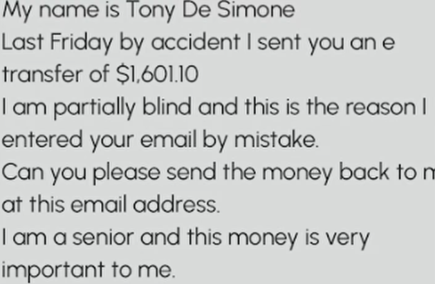 一名多伦多男子在圣诞节前后,通过e-transfer给妹妹转钱时,不小心把邮箱地址输错了,结果钱转到了一个名字很相似的人那里。他已经花了好几个月时间想把钱要回来。 ![]() ![]() 图源:CTV “我当时心想,天啊,我都干了什么,”托尼·德西蒙尼(Tony De Simone)说。这也是他第一次用e-transfer转账。“其实我有视力问题,右眼是失明的,所以有时候发邮件、打字这些事情对我来说会比较困难。”他说自己欠妹妹1600加元,想着圣诞节前后把钱还给她,于是妹妹把邮箱地址给了他。 “我一直跟我妹妹说我已经转了,她一般都会收到一封邮件通知,说已经收到e-transfer的款项,”德西蒙尼回忆道。但钱一直没到账,他就重新检查了一下自己输入的邮箱,才发现少打了两个数字,结果把钱发到了错误的邮箱地址。 ![]() 图源:CTV 他联系了自己的信用合作社,对方告诉他,收款人开通了自动存款(auto-deposit),钱已经直接进了对方账户。“他们跟我说我转错人了,而且钱已经入账了,没办法再拿回来,”德西蒙尼说。 温莎家庭信用合作社(Windsor Family Credit Union)在给CTV新闻的声明中表示:“我们理解这件事给这位会员带来的困扰,也对任何遭遇经济损失的人表示同情。” 声明还指出,这笔e-transfer是由德西蒙尼本人操作的,他自己输入了收款人信息并确认了交易,同时也确认了资金会通过自动存款直接入账。 ![]() 图源:Tony De Simone via CTV 一旦开启自动存款的e-transfer成功入账,如果没有收款人同意,是无法撤回的。“由于收款人并不是我们机构的客户,我们没有权限从对方账户中把钱扣回。我们已经通过正常的银行渠道,尽一切合理努力去尝试追回这笔钱,”该信用合作社表示。 “我们也提醒所有会员,在确认e-transfer之前,一定要仔细核对收款人信息。如果在使用网上银行过程中有需要,我们也随时可以提供帮助和指导。” ![]() 图源:CTV 当德西蒙尼联系到那位收错钱的人,并解释这是个误会时,对方担心这是诈骗,拒绝把钱退回。德西蒙尼一开始表示,损失这1600加元对他的经济状况确实有影响。 “我真的很难受,也希望如果可以的话,能把这笔钱拿回来,”他说。 ![]() 图源:Tony De Simone via CTV 后来,在CTV新闻联系了那位误收款的人之后,对方表示自己之前曾被诈骗过,但现在确认这确实是个错误,最终同意把1600加元还给德西蒙尼。 “真的松了一口气,我很高兴最终把这笔钱拿回来了,”德西蒙尼说。 |
