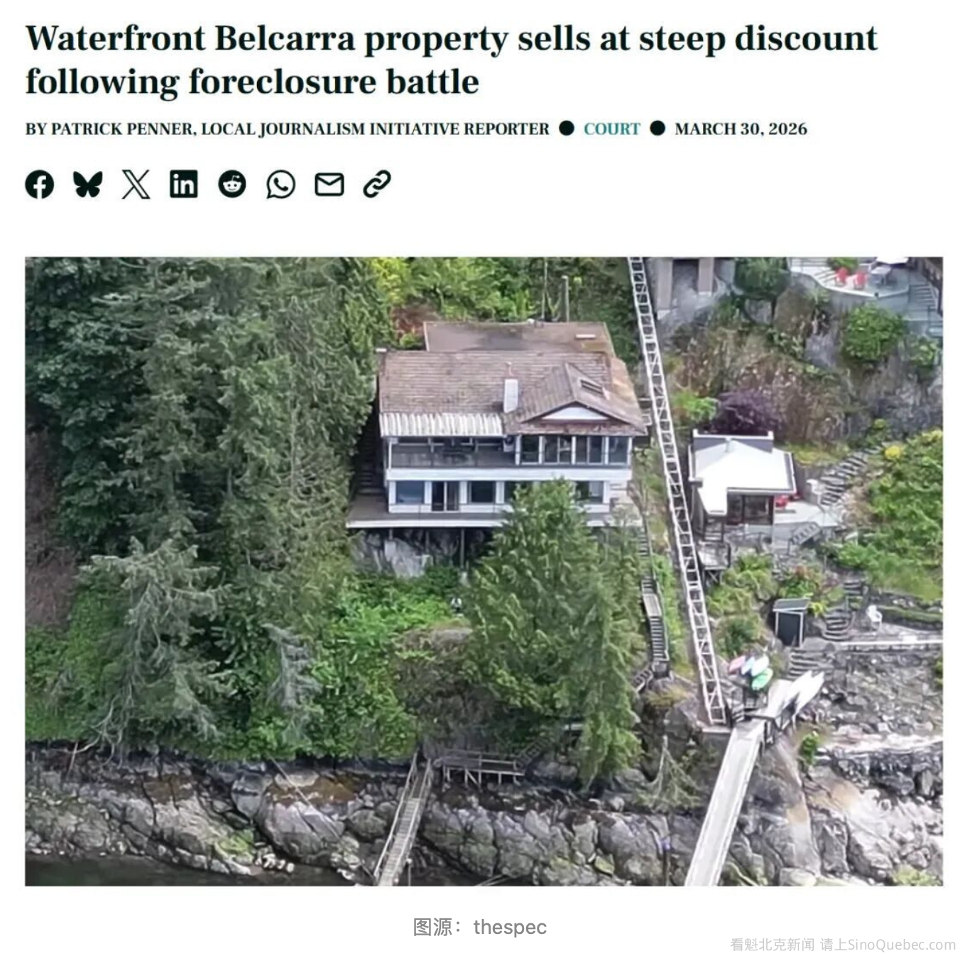 卖房子到底能有多惨?BC省一位华人的的滨水豪宅因止赎被法院以320万元低价批准出售,血亏180万!尽管此前政府估值470万,挂牌价500万,但法院认为市场已经给出了答案。房主虽反对但未能阻止裁决。 这是最近一个惨痛的案例,发生在Belcarra,这个地方在Port Moody算是比较顶级的海景区域之一。很多人心里,这种带海、带码头、环境清幽的地方,基本就等于“有钱人的后花园”。这套房子占两块地,一块空地加一栋1969年的老房子,面积差不多270多平。最早在2022年挂牌的时候,开价是500多万加元。按正常逻辑,这种地段+土地面积,哪怕房子旧一点,也应该有不少人感兴趣。 这宗位于Robson Road的物业在过去一年多尝试出售未果。2月23日,法官Terry Vos裁定,最终获得的320万加元报价符合"审慎"交易的法律标准。 Vos强调,物业长期在市场上挂牌且始终乏人问津,缺乏竞争性报价,远比高估价更具说服力。 她表示:"这是市场说了算的案例之一。" 业主Davina Tang被房贷公司提起止赎程序。 2024年5月,法院下达临时命令,要求赎回房贷需支付逾257万加元,当时利息每天约668元。赎回期限于2024年11月届满,2025年初法院授权贷款方进行出售。 尽管地处Tri-Cities最独特的滨水区之一,地产经纪称近年来大温哥华高端滨水住宅市场极为低迷,买家稀少。 自2022年起,该房产多次挂牌,最初叫价超500万加元,后多次降价。贷款方接管后,2025年初挂牌价420万,也仅收到唯一一份320万的出价。 业主Tang坚决反对,认为成交价未反映公允市价。她引用2025年的评估接近400万、2026年BC Assessment近470万,以及附近Belcarra Bay Road一处房产今年早些时候以480万成交作为比较。 但法院并不采纳这些对比,指出邻近房产较新且开发程度更高。有证据显示,曾有买家同时看过两处物业,最终选择了较新的那一处,主要因为Robson Road房屋年代久远且需维修。 法院还指出,若一味拖延以期更高报价,只会因利息持续增加和地税未缴而导致财务状况恶化。 市政府已警告,如不缴地税,最早可能在2026年9月就会触发地税拍卖。 本次批准的止赎出售,第一顺位房贷仍将出现亏空,第二顺位房贷持有人将无法收回贷款。 |