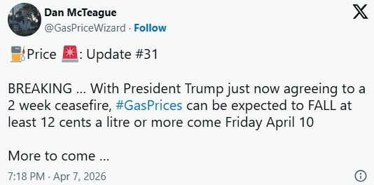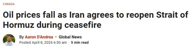 伊朗同意在与美国为期两周的停火期间重开霍尔木兹海峡,周三早间,油价应声大跌,不过,这一决定何时会反映到加拿大加油站的油价上仍不确定。 ![]() ![]() 图源:Global News 美国基准原油周三早间下跌 16.47 美元,至每桶 96.48 美元;国际基准布伦特原油下跌 13.79 美元,至每桶 95.48 美元。 加拿大汽车协会(CAA)数据显示,加拿大普通无铅汽油全国平均价周三早上为每升 1.824 元,比周二上涨了 2 分。 “可负担能源组织”(Canadians for Affordable Energy)主席Dan McTeague表示,安省汽油价格有望在周五至少下降每升12分。 McTeague在X平台上表示:“随着特朗普总统刚刚同意为期两周的停火协议,预计油价将在4月10日(周五)至少下降每升12分,甚至更多。” ![]() 图源:X 油价自2月底战争爆发以来大幅上涨。期间,作为全球能源供应的关键通道,霍尔木兹海峡被有效封锁。 周二晚些时候,特朗普表示他暂缓了对伊朗桥梁、电厂及其他民用目标的攻击威胁。伊朗外长则称,未来两周将在伊朗军方管理下允许船只通过该海峡。 KCM Trade 首席市场分析师 Tim Waterer 在接受美联社采访时表示,这一进展带来了"谨慎的乐观",而非"彻底的庆祝"。他说:"停火只有两周,市场将密切关注霍尔木兹海峡的航运是否如承诺恢复正常,以及这脆弱的停火是否能为更持久的和平协议铺路。" ![]() 伊朗战争下加拿大农民柴油、化肥成本飙升。图源:Global News 特朗普周二晚间确认已收到伊朗提出的 10 点停战建议,尽管前一天他曾拒绝,但这次称其为"可谈判长期和平协议的可行基础"。伊朗方面提出的条件包括:结束地区冲突、确保霍尔木兹海峡安全通行、解除制裁和重建。 以色列总理内塔尼亚胡周三发表声明称,以色列支持美伊停火,但协议未涵盖与黎巴嫩真主党的冲突。 以色列总理办公室还表示,以方亦支持美国确保伊朗不再构成核武或导弹威胁的努力。 周二早些时候,特朗普曾警告称,如果伊朗未在美东时间当晚 8 点前同意协议并重开霍尔木兹海峡,"整个文明今晚都将毁灭"。"我不希望那样,但很可能会发生。"不过他又补充,德黑兰局势可能也会"发生奇迹"。"不过,现在我们实现了彻底的政权更迭,有更聪明、更温和的人掌权,也许会有革命性的好事发生,谁知道呢?" ![]() 卡尼敦促伊朗战争各方"遵守国际法"。图源:Global News 伊朗官员此前曾发誓,如果特朗普兑现威胁,将进行"令人难忘的打击"并"立即且对等地报复"。伊朗总统周二在社交媒体宣布,他本人以及 1400 万伊朗人已报名参军。 巴基斯坦正致力于斡旋停火,呼吁特朗普延长最后期限,伊朗则被敦促重开霍尔木兹海峡。 特朗普扬言"将摧毁伊朗所有电厂和桥梁",并驳回了有关此举可能构成战争罪的担忧。联合国人权事务高级专员 Volker Türk 在声明中称,特朗普的最新威胁"令人作呕"。 加拿大总理卡尼周二表示,加拿大"期待本次冲突各方"遵守国际法。 卡尼说:"这意味着绝不能以平民或民用基础设施为目标。我们已公开和私下敦促本次战争的各方遵守这些责任。" |