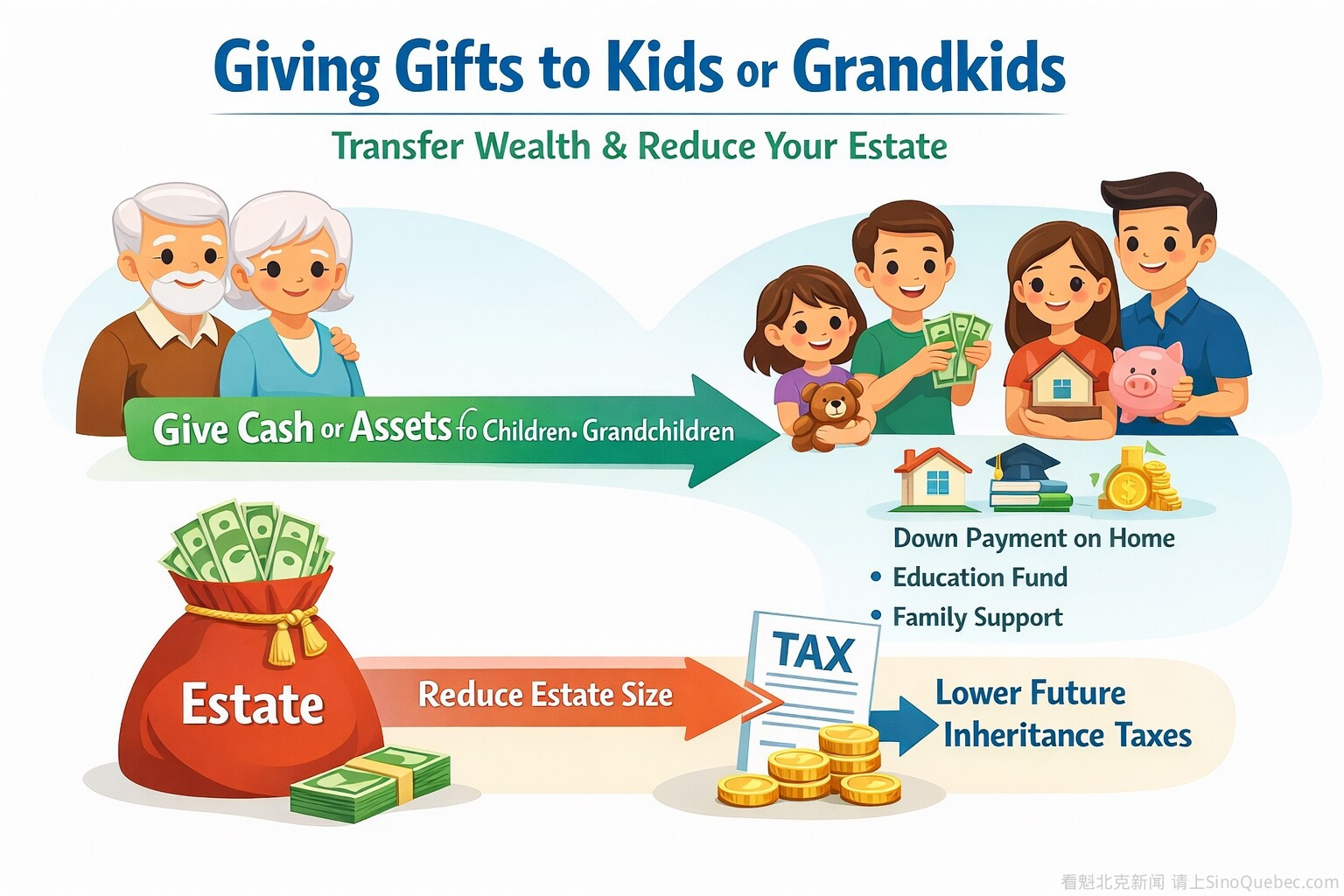 向子女或孙辈赠送现金或资产是转移财富的好方法,同时还能减少遗产规模。虽然加拿大没有赠与税,但某些赠款可能会引发意想不到的税务后果。 一般来说,赠与是指自愿转移现金、财产或其他资产,包括股票、现金和房地产,同时不期望获得任何回报的行为。赠与通常按公平市场价值进行评估,以此来确定是否会产生任何税务影响。 《环球邮报》采访了关于加拿大家庭赠与税务问题的专家。以下是你需要了解的内容: 现金赠与 财务规划师Greg Keith表示:"最容易赠与的就是现金。" 这是因为加拿大对现金赠与不征税。现金赠与可以通过现金、支票、电汇或 e-transfer 的方式进行。 不过,如果你把现金赠给未成年子女,而这笔现金产生了收入,例如投资产生的利息或股息,加拿大税务局可能会把这笔收入转归到你名下,也就是说,你需要为这些所得缴税。 资本利得税 对于现金以外的赠与,加拿大税务局可能会将转移视为已实现处置,意味着转移时按公平市场价值出售了该资产。Objective Financial Partners 认证财务规划师 Jeff McCartney表示,赠与人可能需要在该年的税务申报表中报告任何资本收益。 "如果你赠与的资产有增值,那么你将面临资本利得税。" 股票赠与 赠与上市股票的方式与赠与其他投资类似。ScotiaMcLeod高级财富顾问Marc Henein 说:"当你出售一种证券时,是要付出代价的。" 加拿大税务局将股票赠与视为已实现处置,这意味着自购入之日起的增值可能会触发资本利得税。 收礼人应保留股份转移当日的公平市场价值记录,因为这个价值在股份最终出售时成为新的成本基础。 一些规划师建议采用更简单的方式:先出售股票、缴纳资本利得税,然后赠与现金所得。收礼人可以随后重新投资这笔钱,例如将其投入免税储蓄账户或注册退休储蓄计划等税收优惠账户。 房地产赠与 将住宅或其他房地产转让给配偶以外的任何人,也被视为按公平市场价值已实现处置。如果该房产自从你获得以来的价值已上升,可能会触发资本利得税。如果该房产是你的主要住宅,可能有资格获得资本利得豁免。 根据省份和市政当局的不同,可能还需要支付地产转移税。在许多情况下,收礼人需根据该房产的公平市场价值缴纳该税。 使用信托 一些家庭使用信托来转移财富,同时对资金的使用方式保持一定控制。这在计划留下大笔遗产的较富有家庭中更为常见。 对于许多家庭来说,使用信托也可以降低总体税务负担,因为信托内的投资收入可能会由更低税级的受益人(如子女或孙辈)缴税。 信托允许父母或祖父母为资金的分配设定条件。例如,资金可能只有在孙辈上大学时才会被支付。