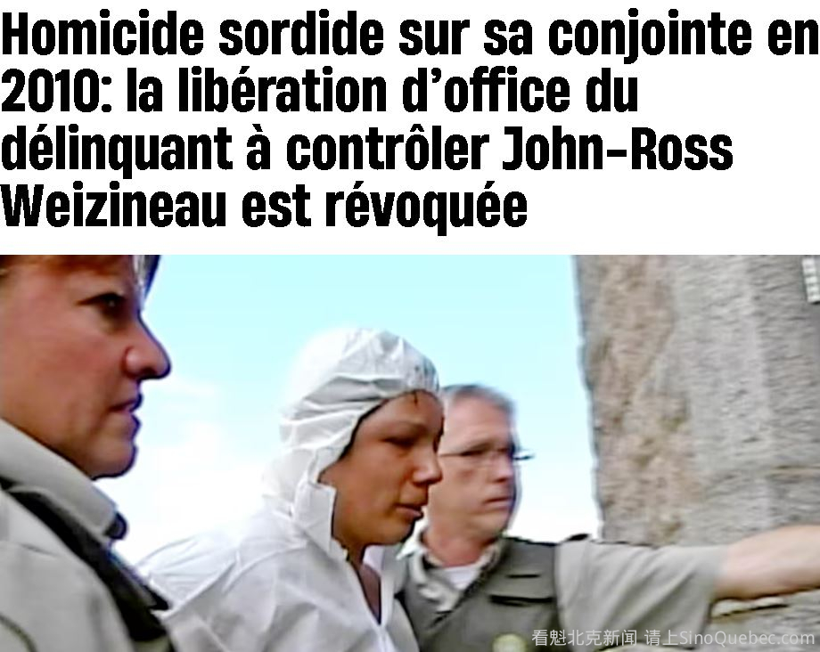 魁北克省男子John-Ross Weizineau因在2010年于Chibougamau用斧头连续砍死妻子而入狱。近日,他的强制假释被撤销,此前他因身穿女性服饰在车辆中徘徊被警方截获。 现年39岁的Weizineau自2013年11月起服刑,因误杀妻子Cindy Gauthier被判联邦监禁12年零7个月。 按照法律规定,他在服刑三分之二后,于2022年4月13日获准受监督假释。 然而,加拿大假释委员会(CLCC)于4月2日决定撤销他的假释权,原因是他明显违反了“不进入酒吧”的假释条件。 此前,其假释曾于去年12月被案件管理团队暂时中止,当时他与警方的接触情况被认为令人担忧。 12月11日深夜,他因车辆噪音被警察拦下,当时发现他穿着女性服饰并戴假睫毛,他称这是与工作相关的打扮。 然而,这一情况令干预人员警觉,因为其行为与2010年妻子遇害后的逮捕情况类似——当时他伪装成女性企图绑架并强奸一名陌生女子。 CLCC在通知中写道:“考虑到您在市中心驾车穿女装的行为,与您被逮捕当天采取的行为相同……评估后认为您对社会的风险已不可控,因此当天立即执行了暂停假释令。您在逮捕过程中配合了警方。” 对其档案的进一步分析显示,他明显违反了“不进入酒吧”的假释条件。 值得注意的是,Weizineau的联邦刑期将于2026年6月届满。届时,他将受到长达10年的长期监督令约束。