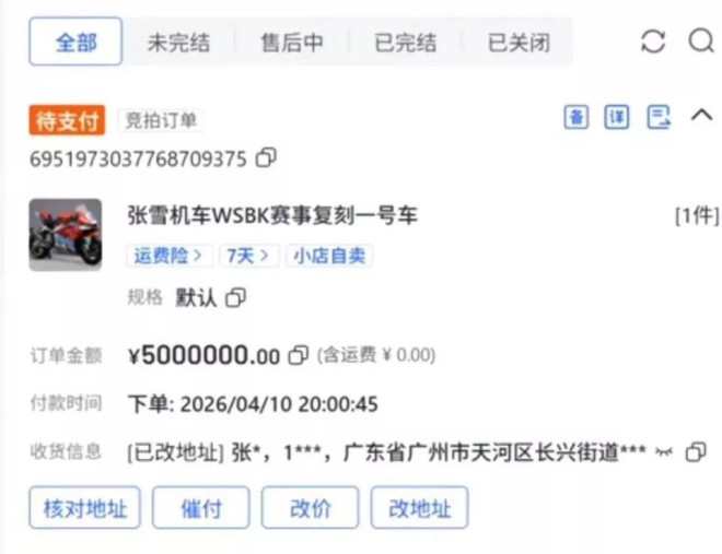 今天(11号)上午,都市现场记者致电昨晚成功拍下张雪冠军复刻赛车的网友——“敌敌畏”何先生。他告诉记者,到现在,心情也难掩激动。 ![]() 回想起不到1分钟的拍卖过程,何先生依然觉得不可思议。 他表示,自己根本没想到会这么快拍到这辆赛车,起初并未抱很大期望,只是随意地点了两下,就这么机缘巧合地拍下了。 ![]() 拍下赛车后,何先生称,从昨晚截至目前,他一直联系不上张雪方工作人员,公司这边着急想把尾款付清,对方也没有主动联系自己,“现在我们在忙碌这个(付尾款)事情。” ![]() 另外,何先生进一步解释道,他是代表公司拍下这辆冠军复刻车的。因为公司老板热爱机车,也十分喜欢张雪,而且他们平时就热衷于公益事业,所以这次召集全体员工代拍,“我只是比较幸运的那一个。” ![]() 图源:洗脸熊创始人个人账号截图 对于张雪希望保留奖杯永久探视权一事,何先生说,他们公司也非常支持,并欢迎张雪到“洗脸熊”进行现场参观。 ![]() 而这台车辆的后续情况,何先生告诉记者,后续他们会陆续通过其个人账号或洗脸熊公司官方账号进行公布。 都市现场记者搜索发现,何先生的个人账号“洗脸熊敌敌畏137”的简介已改为:有酒就有生活,不负众望,代表洗脸熊成功竞得张雪机车! ![]() “敌敌畏”网友也发布视频表示心情非常激动,文案说到:大家不要怀疑,是我,真的是我! ![]() 此前报道: 昨晚(10日)8点01分,张雪冠军复刻赛车最终竞拍结果出炉:由“敌敌畏”网友成功拍下。1分钟不到,500万拍成,起拍价40万,拍卖上限500万,竞拍款项全部捐给嫣然天使基金。 |