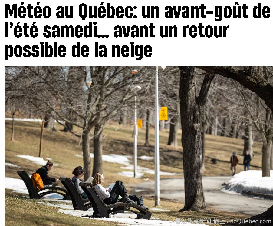 经历了多日阴冷多雨的春季天气后,魁北克将在周六迎来短暂的“夏季般高温”,但冬季并未真正结束。 今天周三(4月15日),蒙特利尔及魁北克多地天气阴沉、降雨、偏冷。 加拿大环境部Environnement Canada 气象学家 Julien Pellerin 表示,这种天气是冬春交替的典型特征。 根据 Pellerin 的说法,尽管气象学上的春季从3月1日已经开始,但魁北克目前仍处于冷热气团不断交锋的“气团博弈”之中。 一系列低压系统正在持续经过魁北克。周四晚至周五早晨,将迎来持续降雨,预计在大蒙特利尔、Mauricie 以及 Outaouais 北部等地区降雨量达15至20毫米。 周四气温变化较大:魁北克南部约15°C,而其他地区更凉,尤其是东部和北部。 从周五开始,气温将逐步上升:Montérégie 可达17至18°C,Outaouais 南部部分地区接近20°C。但真正的暖空气将在周六到来。 一股来自墨西哥湾和美国中部的暖空气将推动气温升至20°C以上。 蒙特利尔和 Trois-Rivières 可能达到20°C,而 Montérégie 和渥太华地区可能达到21至22°C,形成明显的“夏日预感”。 但这段温暖天气非常短暂。周日,一股强系统将给魁北克南部和中部带来降雨,包括蒙特利尔和 Outaouais。 随后在周日到周一之间气温将急剧下降,圣劳伦斯河谷地区可能接近0°C。 届时包括蒙特利尔、Estrie、Mauricie 和 Beauce 在内的多个地区可能再次出现降雪,但预计不会形成积雪。 不过,这种低温只会持续约两天,之后气温将恢复到季节正常水平。