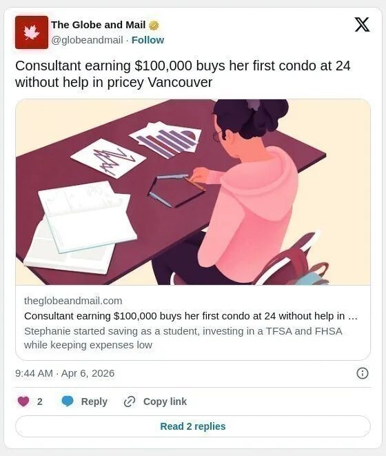 (加西网综合)一名年仅24岁女孩独自买下温哥华房产:年薪10万、零家庭资助完成“加拿大最贵城市置业”。 ![]() 24岁的斯蒂芬妮(Stephanie)在加拿大最昂贵的城市温哥华实现了一个看似“不可能”的目标:独自购买房产,且购房首付完全没有获得家庭经济支持。 在加拿大,首次购房者的平均年龄略低于35岁,但由于温哥华房价持续高企,越来越多购房者不得不推迟进入市场的时间。根据加拿大房地产及金融分析网站WOWA的数据,温哥华平均房价已超过120万加元,高于多伦多约100万加元的水平,也远高于卡尔加里约62.7万加元的均价。 根据《环球邮报》的报道,现年25岁的斯蒂芬妮是一名顾问,年收入约10万加元。她在去年秋天以55万加元购入一套一卧室公寓,首付20%。而她的置业之路,早在学生时期就已开始规划。 她说:“我一直希望在25岁之前拥有属于自己的房产”。 在面对“选择外省高昂学费还是留在家乡维多利亚读书”的决定时,她选择了后者,这一步成为她积累储蓄的关键基础。 她在本科期间与家人同住,几乎没有房租支出,也避免了学生贷款压力。在后期大学阶段,她通过实习与兼职,每月可储蓄约1000加元。 与此同时,她开始通过免税储蓄账户(TFSA)投资,并在首次购房储蓄账户(FHSA)推出后加入该计划。起初她自行操作投资组合,随后因工作繁忙转为部分委托管理。 她表示,疫情期间市场下跌为她提供了“低价入场”的机会,她说:“我的平均回报率大概在60%左右”。 她的投资主要集中在自己熟悉的领域,包括零售、加拿大银行、能源与科技公司,并配置了标普500指数基金。 这部分投资增长成为她20%首付的重要来源:总计11万加元首付中,有2.4万来自FHSA,其余来自TFSA。 ![]() 她的第二个优势是持续压低生活成本。 毕业后,她先在温哥华与亲属同住约一年,每月仅支付约200加元水电费;之后与室友合租,租金约1250加元。 “我几乎没有开销”。她回忆第一年工作生活时表示,这让她能够持续高强度储蓄。 到了20多岁初期,她已积累足够资金考虑购房,但仍在犹豫是否要变现投资资产,尤其是在其投资表现良好的情况下。 她说:“我一直在想,是继续放在TFSA里,因为它表现很好,还是换成房地产?毕竟过去五年房价并没有明显上涨”。 最终,她决定入市,一方面担忧股市波动,另一方面也给自己设定了时间节点,“如果现在不买,我会一直犹豫下去”。 她最终从一家大型银行获得三年期固定利率3.99%的贷款,每月按揭约2100加元,加上400加元物业管理费。虽然高于此前租金,但她认为值得。 她说:“拥有自己的房子,把钱投入到自己的资产里,是一种回报感”。 未来一到两年内,她计划考虑出租该单位或以此作为杠杆购买下一套房产。她也承认,如果再等一等,或许能获得更好的市场时机,但价格至今并未明显下跌。 她说:“完美择时是不可能的”。 不过购房过程并不轻松。审阅物业管理文件、处理交易流程对她而言都是新挑战,她依靠伴侣(从事地产行业)及贷款经纪人的帮助完成交易。 斯蒂芬妮表示,她珍视作为房主的独立性,也理解在温哥华尤其是年轻女性独立购房的难度,“如果你能自己做到,就尽量自己做,因为你不想过度依赖伴侣”。她说。 购房与支出概览: