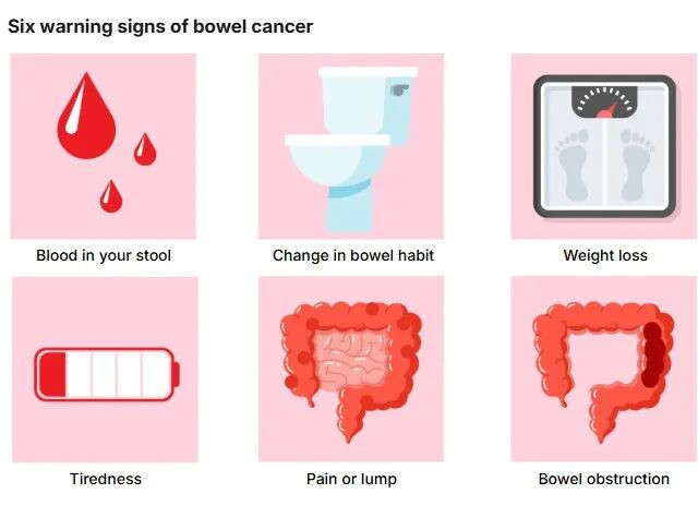 专家强调,即使肉眼看不到出血,也可能存在微量出血,因此筛查检测非常重要。 ![]() 3️⃣ 腹胀、腹痛与便秘加重 持续腹部不适、痉挛或胀气可能是警讯之一。 在部分病例中,肿瘤甚至会造成肠道部分或完全阻塞,严重时可能引发肠梗阻,属于医疗急症。 4️⃣ 不明原因体重下降与严重疲劳 直肠癌可能引起慢性出血,导致缺铁性贫血,进而出现: