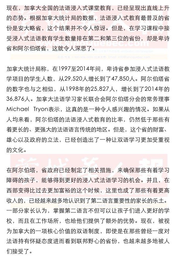 上世纪60年代,联邦将法语定为加拿大第二种官方语言。这种做法,在像安大略和魁北克这样的省份来说,或许可以讲得通,但是,把法语印在早餐麦片的包装盒上以及道路标识上,在像阿尔伯塔和卑诗这种缺少与安省和魁省同等法语人口规模或语言文化根基的省份中,是极其不受欢迎的。 以阿尔伯塔省为例,在2011年的人口普查中,排在英语之后的第二大母语为德语,而在其350万人口之中,母语为法语的人仅有大约6.8万。在卑诗省,讲法语的人士甚至比阿省还要少,在那里,印度旁遮普语、中文普通话、中文广东话以及菲律宾塔加禄语,是除英语之外的最常见的母语。在萨斯喀彻温省,法语与德语和印第安克里语相比,也是难以望其项背。因此,如果说加拿大西部,尤其是阿尔伯塔,会以一种“皈依式的狂热”来拥抱双语社会,这无疑是一个不小的讽刺。 然而,随着财富和人口的增长,老一套的刻板印象与文化观念已经渐渐地边缘化了。 |