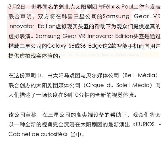 由于太阳剧团与贝尔媒体公司与Félix & Paul工作室都是来自蒙特利尔的公司,所以可以想象,蒙特利尔人将会是第一批尝试这种全新演出体验的观众。 Félix & Paul工作室的创始人、演出制作人Stéphane Rituit表示,太阳剧团由于其创意层出不穷且品质出众的演出而享誉全球。将太阳剧团与Félix & Paul工作室的大胆和创意融为一体,将会给观众们带来更加震撼的视听体验。 |