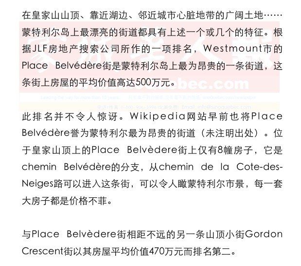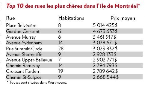 JLR公司计算了蒙特利尔岛每条街道上独立房屋的平均价值。所得结果同2014-2016年度执行的政府土地评估价值相符。该公司针对共管公寓也做了同样的统计。最昂贵的前十条街全部在最富裕的Westmount市,排名如下: 2015年,如果能够在蒙特利尔岛上买到低于20万元的房子,那将是十分幸运的事,但是,也不无可能。JLR公司也找出了十几条街道,街上的房屋平均价格低于20万元。但是,对于它们之中的大多数,独立房屋数量都少于10栋并且二手销售非常罕见。不过,有5条街道可以提供更多的选择。而且最近的某些成交甚至还低于20万元的门槛。这多少给了春天的第一批购房者以些许希望。 |