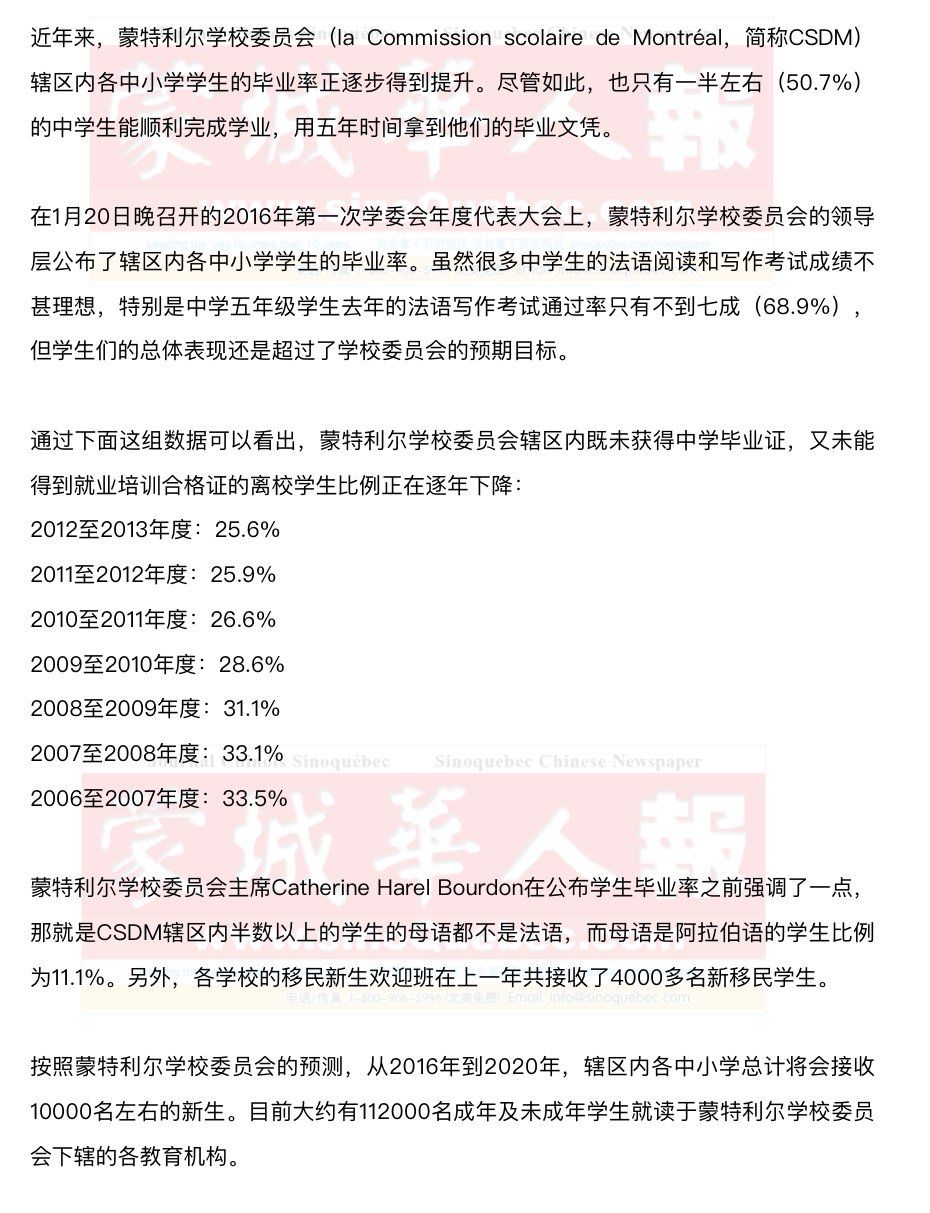 在大会即将结束的时候,学校委员会专员们透露CSDM计划实施一项新政策,以进一步规范各种儿童课外看管活动,避免类似去年秋季某个教师 备课日(pédagogie)出现的不良事件再次发生。在那个教师备课日中,某学校将到校接受课外看管的孩子区别对待,家长缴纳了27元活动费用的孩子有权使用各种充气游乐设施和参加其他一些由专人组织的游戏,而家长没交费的孩子就只能呆在教室。 在接下来的几周时间内,蒙特利尔学校委员会将为创建一个明晰的教育平台,在预算允许的范围内筹办各种活动而广泛咨询家长和内部工作人员的意见。 |