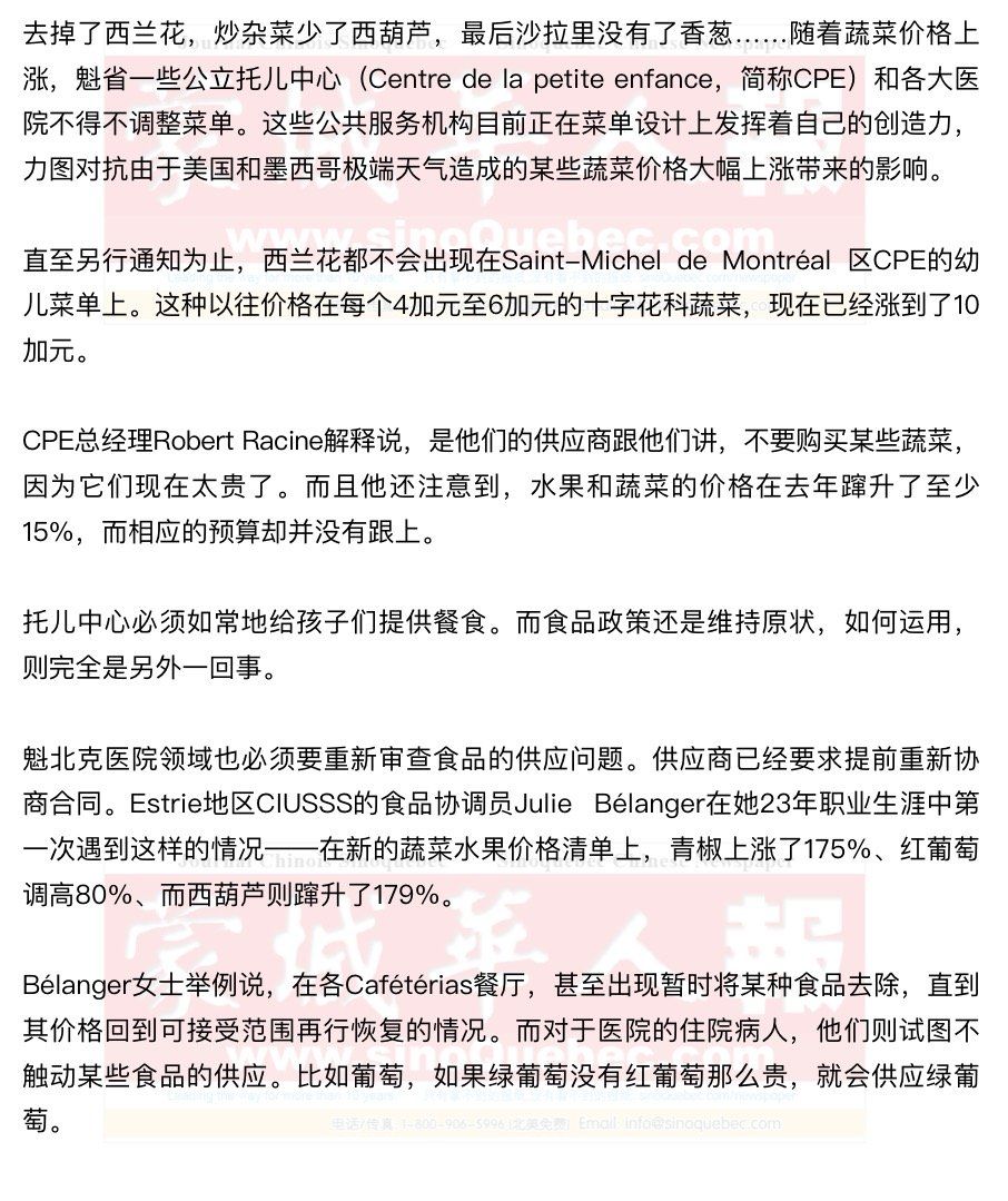 Bélanger女士补充道,医院所制定的菜谱都必须符合特定标准以避免过敏或者不耐受情况发生。因此以另外一种食物替换某一种食物是困难的。比如,一道炒杂烩的菜原本包含西葫芦,现在只能临时去掉它同时增加配菜中原有的胡萝卜或者蘑菇的用量。他们必须要监督的最重要的是安全问题。 对于那些长期住院病人,膳食基本保持不变是很重要的。对于这些遇到丝毫改变都会变得不稳定的人来说,与其取消某种供应不如稍作调整,这很重要。 在Mauricie-Centre-du-Québec地区CIUSSS负责食品协调工作的Isabelle Hébert解释道,在沙拉里,与其放青葱导致价格翻倍,不如改放红葱或者脱水香葱,这样葱头的味道还是可以保留的。 她补充道,做出配料的些许调整要好过减少菜品品种供应,因此必须这样做。 再比如,他们不会停止供应莴苣。但是如果直茎莴苣比圆莴苣贵,那么他们有权将两种莴苣混合起来供应。 |