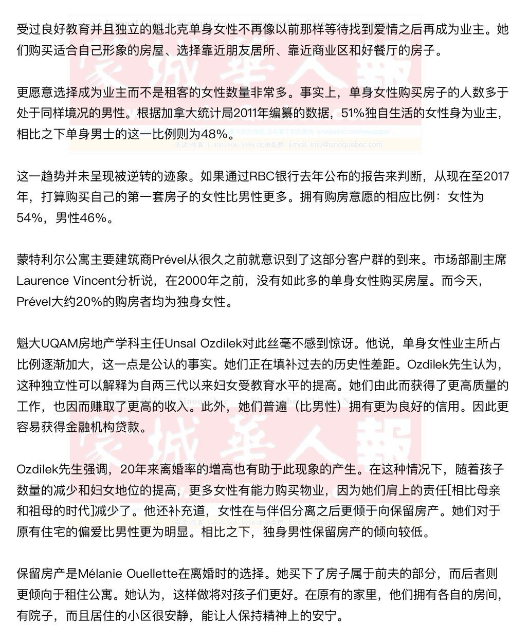 在南岸拥有10年业内经验的房地产经纪Pina Scicchitano也在他的客户中观察到同样的反应。他说,离婚妇女倾向于在离婚发生后尽快购买一所公寓。她们对于稳定有着更为强烈的需求。她们需要尽快拥有一个让自己可以认同为家的地方同孩子们(如果有的话)一起生活。 而男人们则对于租住公寓没有顾虑,尽管他们常常有钱购买独立房屋。但他们更希望给自己时间,至少两年,来思考自己未来生活的方向。 在Rosemont和蒙特利尔东部做了19年房产经纪的Yves Doyle看得更远,他说,女孩子们节省,所以她们有钱。而男孩们的钱大多花在买车和电脑等电子产品上。 单身女士买房并不仅仅为了给自己买一个挡风遮雨的地方,同时也为了进入楼市投资。 市中心和Outremont区地产经纪Roseline Guevremont确认,越来越多的女性购买房屋和公寓是为了投资。他就曾见到有些独身女性在同一年购买两套甚至三套公寓,因为她们能够嗅出良好的商机。 可以肯定的是,这个被Ozdilek先生称之为“房地产女性化”的现象,迫使开发商推出符合这部分客户需求的房地产产品,她们希望购买安全、舒适、靠近繁华地带、并且维护费用较少的房子。 FTQ房地产基金市场分析顾问Rémi Couture解释道,在这方面,公寓往往更为符合单身女性的需要。公寓受到职业女性-往往还是单身的职业女性-的喜爱,因为对于她们来说,比起带有需要独自进行维护的院子的大房子,公寓更为方便,也更便于她们筹措资金。 |