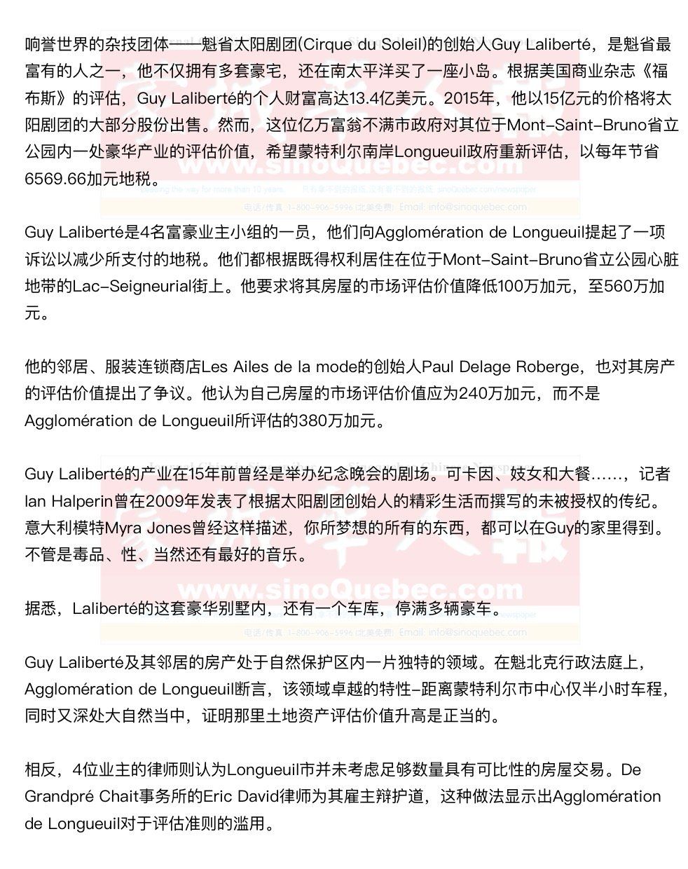 其他三位邻居的房产价值: Paul Delage Roberge和Camille Drouin Roberge 2017年地税:23 569.76元 Longueuil市政府估值:380万 申请估值:240万 地税节省:8391.75元 Monique Leblanc Charest 2017年地税:27 608.36元 Longueuil市政府估值:450万 申请估值:330万 地税节省:7358.48元 André Simoneau和Johanne Chamberland 2017年地税:22 858.36元 Longueuil市政府估值:370万 申请估值:240万 地税节省:7972.96元 目前,双方律师均保留各自的意见,Saint-Bruno市政府和Longueuil市政府也是如此。 |