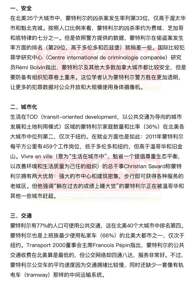 虽然蒙特利尔常常成为人们批评指责的对象,但在一番比较之后会发现这个城市其实还是挺不错的。依照统计数据发布平台Observatoire Grand Montréal最新整理汇编的资料,蒙特利尔在安全、城市化、交通、经济、环境和住房这6大方面的排名可算令人欣慰。另外,专家们还提出了一些让蒙特利尔发展得更好的建议。 |