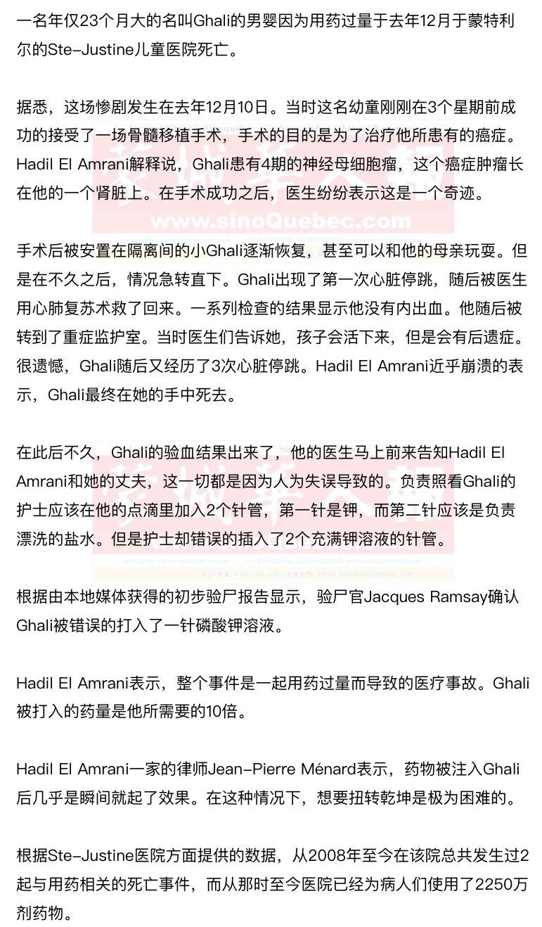 目前,针对Ghali的案例,医院方面只是通过邮件做出简短解释:对一种药物的使用已经被确认是导致这个孩子死亡的原因之一目前为止,医院内部调查无法确认到底是哪一名或者哪些医护人员的失误导致了事件的发生。 Ghali的父母对于医院方面对该事件的处理非常不满。除了一名更加懂得如何做好自己工作的护士以外,他们还希望医院可以在事发之后向他们提供帮助。 孩子的父亲Reda Chorfi表示,在Ghali死后,医院把他们和孩子的尸体放在了一个房间,而整个过程没有人过来告诉他们随后会发生什么。他们从头到尾都处处在崩溃的状态。 孩子的母亲Hadil El Amrani则表示,他们最终决定将事情的始末公之于众,因为他们希望类似的悲剧不再发生。他们根本不相信医院方面向他们提供的解释。 这对可怜的父母目前仍然在等待最终调查结果以得知自己独子死亡的具体原因。 |