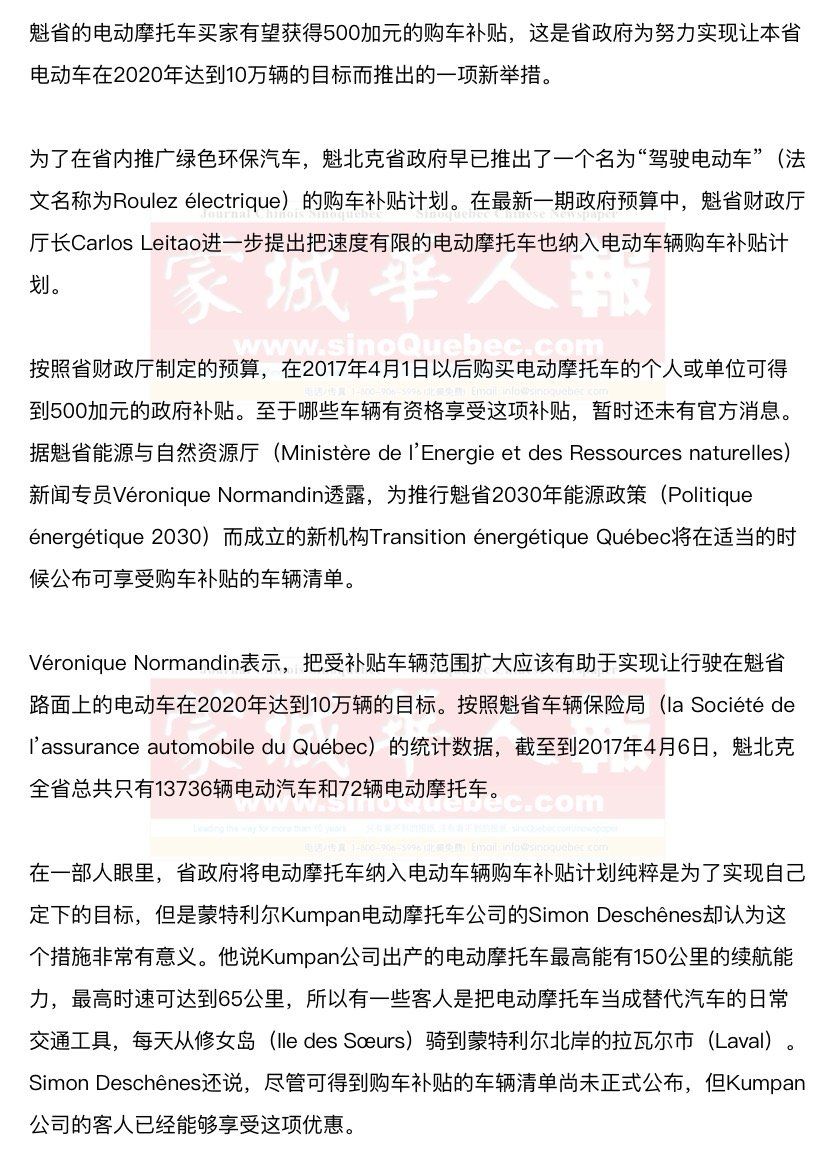 在最近两年售出了大约200辆电动摩托车的Simon Deschênes指出,北美消费者对电动摩托车还不太习惯,不过这种机车给使用者带来的好处却是实实在在的。只要骑上去试一试,就能迅速感受到它的灵活性和加速性能。另外,在城市里找摩托车停车位肯定要比找汽车车位容易得多。 媒体采访到的一名电动摩托车用户Stéphane Tremblay说他的“小电驴”在去年夏天行驶了将近3000公里。跟驾驶汽车相比,电动摩托车让Stéphane Tremblay每周差不多省下了60加元的汽油费。 需要注意的是,电动摩托车无权在自行车道上行驶。很多人不清楚这一点是因为有一些电动摩托车被划归为电动自行车,这些摩托车装有脚踏板,时速通常不超过30公里。 根据媒体得到的消息,购买电动自行车是享受不到政府补贴的。但魁北克自行车爱好者协会Vélo Québec的负责人Suzanne Lareau称这项旨在鼓励绿色交通(transport vert)的购车补贴有可能会惠及电动自行车,甚至普通自行车。 |