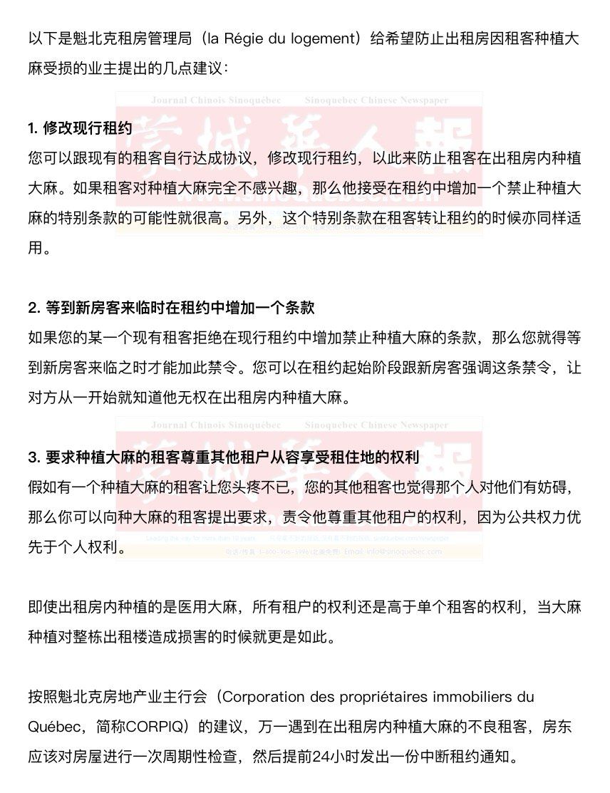 加拿大联邦政府计划在2018年7月1日之前让娱乐性大麻合法化。与此相关的法案还赋予普通成年人在家最多种植4株高度不超过1米的天然大麻植物的权利。由于大麻的种植需要特殊的条件和照料,有很多出租房业主开始担心自己的物业会先受其害。 为了更好地阐明大麻种植给出租房带来的各种问题,在魁北克省工程师协会和魁北克省地产经纪管理机构OACIQ均有注册的专业地产投资人Ghislain Larochelle讲述了一段他的亲身经历。几年前,在Ghislain Larochelle的一套出租公寓内,住着一个热衷于花卉栽培的租客。这个租客在他家种满了各种各样的花卉植物,还安装了一套促进花卉生长的加湿系统。虽然租客那些美丽的鲜花很是令人赏心悦目,但公寓内的湿度却跟亚马逊热带雨林有得一比。过了一段时间之后,促进花卉生长的加湿系统让租客家中出现了各种各样的真菌和霉菌,连隔壁的几套公寓也受到了牵连。租客擅自做出的电路改装有多危险就更不消说了。Ghislain Larochelle认为自己当时最大的问题是在房屋损坏发生之后才注意到这个情况,他于是总结出“防大于治”这条房屋养护理念。 |