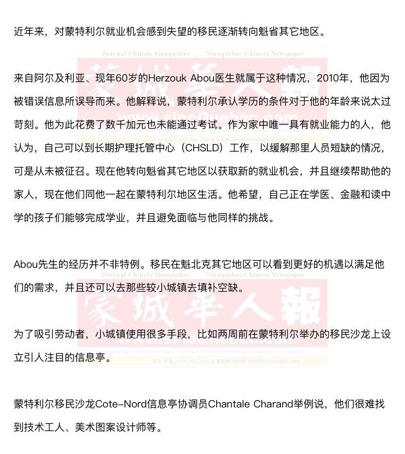 Saguenay/Lac-Saint-Jean的信息台上也是同样的情况,甚至地方自治市可以报销应聘者前往“合作”企业进行参观的费用。Lac-Saint-Jean地区移民接待组织Portes ouvertes sur le Lac的代理Marco Dello-Sbarba承认,他不喜欢“推销点”的概念。他们到这里来主要是为了帮助人们找到工作。 尽管较小城镇努力介绍当地的吸引力,尤其提出住房价格低廉的优势,但是气候因素仍然是移民远离大城市的主要问题。这甚至成为某些人拒绝的原因。 相反,有些人,比如20多岁的HEC商学院信息技术学生Yin Fang,则认为气候不失为一个很好的挑战,也是一个新冒险的开始。他还提醒道,无论哪里的魁北克人,都“非常热情,充满温暖”,足以补偿外部气温低的缺陷。 |