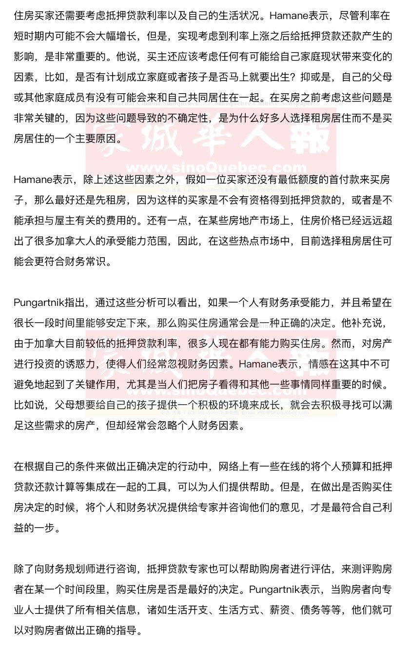 购买住房是很多人一生中做出的最大的一次投资,然而,尽管这经常会被视为是人生中的一个里程碑,但是住房屋主的身份却并不是对每个人都是合适的。事实上,很多首次购买住房的人都渴望能够实现从租房到买房的一次飞跃,但无论从现在还是从长远来看,在购买住房之前,首先来检查一下这个决定是否与自己的实际情况和财政目标相匹配,才是至关重要的。 TD Wealth的资深财务规划师Nacim Hamane表示,拥有一处房产肯定会带来一些好处,比如说,每支付一笔抵押贷款还款,就会使自己对住房建筑的产权权重增加,当房产增值的时候,就会产生利润,而且成为屋主后,会在很多事情上都可以由自己来做主,可以做出自己的决定,比如说房屋的装修或维护等等。 然而,在当前的财政气候下,加拿大很多的房主都是被经济形势和房地产市场上的杠杆原理所左右的,这足以表明,对那些刚刚涉足房地产市场的新手来说,在做出投资之前,认真理解屋主在财务上所要承担的全部风险,为什么是非常重要的。房地产管理公司Summit Property Management的运营经理Tristan Pungartnik表示,住房买家常常会不自量力,变成人们经常说的“有房子的穷人”。 当有了购买住房这种想法的时候,会有很多需要考虑的因素,但其中负担能力是应该被首先考虑的。Pungartnik表示,在做出购买住房决定的时候,有一份稳定的收入以及至少20%的首付,是最重要的基础。他说,购房者需要对自己的工作和生活稳定性进行评估。 Pungartnik说,住房买家首先需要确保,如果他们做出决定购买住房,自己也能够维持渴望的生活方式,这可能会包括很多事情,比如电力公共设施的费用、汽车分期付款、家庭开支、旅行以及娱乐休闲活动等等,而且还能够继续存款。 |