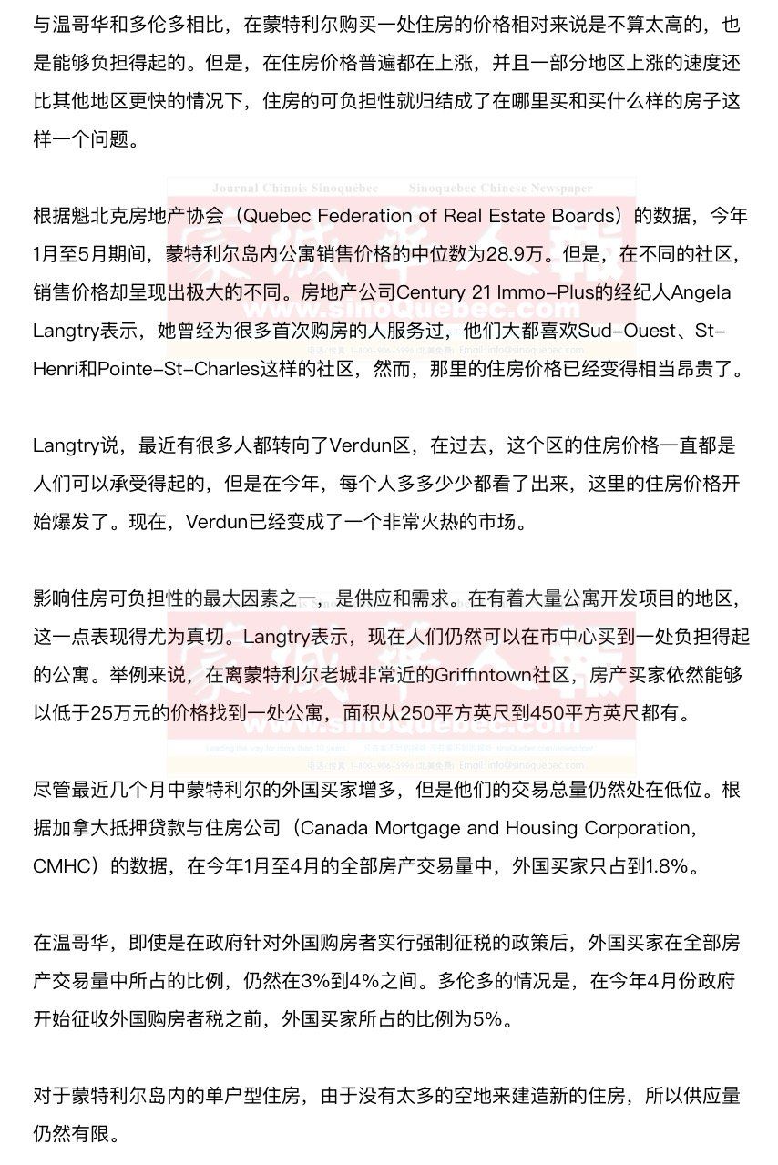 魁北克房地产协会的市场经理Paul Cardinal表示,这是土地资源不足的问题,岛上的土地比房屋更贵,所以通常情况下,人们付出同样的价格,但在郊区可以买到面积更大的住房。他说,照现在的样子看,当蒙特利尔地区房产的价格开始以更快的步伐上升的时候,这种趋势就会从蒙特利尔中心开始,然后蔓延至附近市区进入外围。 Cardinal表示,如果是在蒙特利尔岛上,市场稍微对卖方有利,但如果是在Longueuil、Laval或Brossard这样的周边地区,就会稍稍不利于卖方。更进一步地说,人们可能会发现,一些市场要么是平衡的,要么是稍稍有利于买方的。 在蒙特利尔岛上,今年1月至5月间单户型住房的销售价格中位数为43.2万元。Langtry表示,就房子而言,她认为很多第一次购房的买家,必须要离开蒙特利尔岛才能找到负担得起的住房。像Ile-Perrot、Pincourt和Vaudreuil这样的地方,其市场活跃度都很高,尤其是在靠近火车站的地方,这是因为通勤便利。 Langtry说,有一部分人不得不把目光放在了蒙特利尔南岸,不过在岛上,像Pierrefonds和Roxboro这样的地区,仍然是住房可以负担得起的社区。她表示,在西岛的其他地方,找到一处面积稍小、价格不超过40万元的住房,尽管可能要费一番功夫,但仍然是有可能的。不过,较低水平的市场供应,使得这项工作变得更加具有挑战性。她说,这个地区的住房在销售的时候,经常会同时收到多份出价,最终都是以超过卖方要价的价格成交的。Langtry指出,3间卧室以上的住房,可以肯定地说,市场供应是不足的。 然而,上涨的价格并不是让首次住房买家感觉更加困难的唯一一件事情。去年秋天,联邦政府对抵押贷款保险的规定进行了变动,要求所有申请有保险抵押贷款的人必须要通过一项压力测试。这是一项确保买家即使是在利率上涨的情况下也能够负担得起抵押贷款还款的措施。之前,在买房时首付20%房款的买家,是免于这项压力测试的。 抵押贷款规定上的变化,普遍被认为会减少首次购房者的数量,因为这项政策减少了一位买家有资格贷到的抵押贷款的数额,而且,首次购房者一般都没有多少资本。加拿大抵押贷款与住房公司提供了全国大部分的购房抵押贷款保险。今年5月下旬,公司报告称,其承保的住房买家的数量下降了23%。 Cardinal表示,要想准确地说出其中到底有多少首次购房者因为规定的变化而被拒之门外,是太不可能的,但其中却是有很大关系的。他说,这些购房者不得不对自己的要求进行折中,要么购买一处较小的房产,要么就到离市中心更远的地方去买房。 |