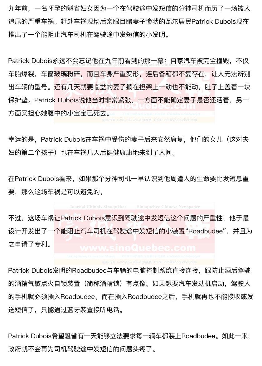 在相关法律问世之前,Roadbudee的使用将是自愿的。Patrick Dubois相信很多年轻人的父母会在自己孩子的车上安装这个小设备,因为那些新一代司机对手机的依赖性普遍很大。 按照加拿大汽车协会魁北克分会(CAA Québec)的统计,至少有26%的车祸是由司机在驾驶途中使用手机直接导致。 |