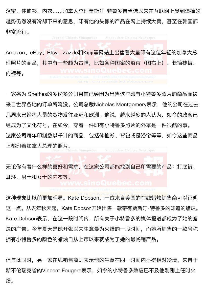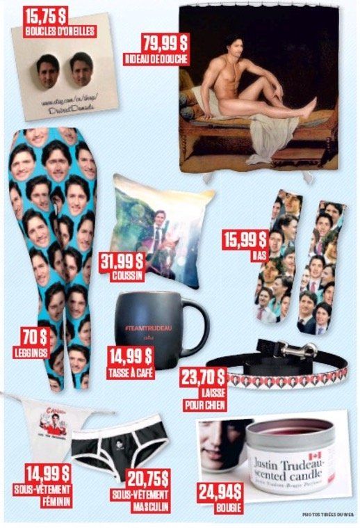 Vincent Fougere表示,他继续出售印有小特鲁多照片的产品,但是销量比以前下降了很多。据他的观察,这些商品的销量每个月都在减少。Vincent Fougere出售一款印有小特鲁多照片的狗链。 小特鲁多所在的加拿大自由党也表示感受到了总理所受到的关注,并同样从中获利。自从小特鲁多在2012年当选以来,自由党开设了一家在线商店,出售与小特鲁多的形象以及自由党有关的产品。这家在线商店的销售模式看起来像是捐赠,自由党不愿透露他们到底通过这家商店赚了多少钱。 |