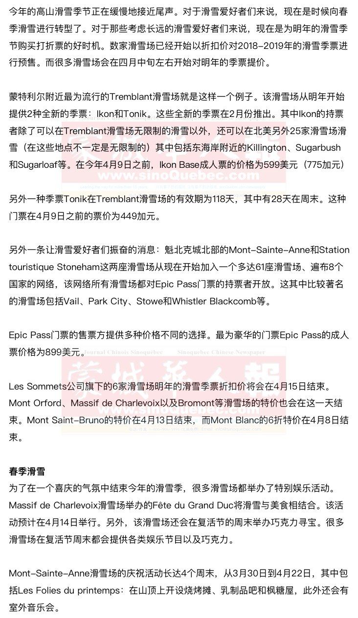 Mont Orford滑雪场的活动日被设在3月24日,这一天要举行的活动叫做Raccoon Downhill。这是一个家庭活动,参与者要装扮起来。 另外,每个地区的每个滑雪场都会在春天举办一场奇特的速降滑雪比赛,这也是人们可以欣赏到穿着奇装异服的人们从山上滑雪呼啸而下的机会。无论是在哪个滑雪场,规则都一样:滑雪者必须从一个斜坡滑下来,并依靠下降是积累的速度试图飞过一个在坡下事先挖好的水池。很多人最终都会掉到寒冷刺骨的水里,水深在不同的滑雪场并不相同——有的地方的水深只没过膝盖,有的滑雪场则会挖个深坑,让水深到达脖子。每个滑雪场都有各自不同的活动日期,但是这个活动非常流行,所以无论您住在哪,都会有机会参与到其中。 |