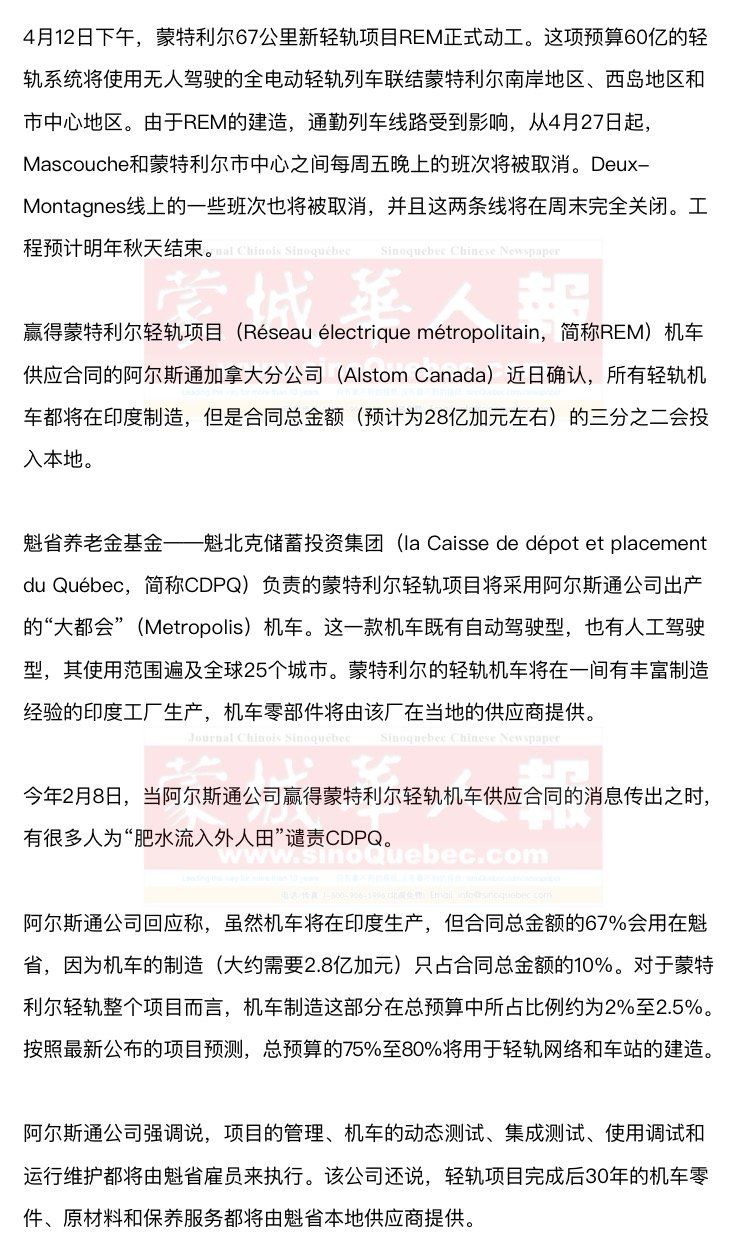依照阿尔斯通公司的计划,在轻轨机车的使用调试阶段(2018年至2022年),大约会出现350个新的工作岗位,随后30年中的运行维护大约能创造250个就业机会。机车维护中心的修建将由阿尔斯通公司完成。 除了机车车厢之外,蒙特利尔轻轨的信号牌和月台屏蔽门也将在魁省以外的地方制造。 使用阿尔斯通公司大都会机车的城市主要有巴塞罗那、利马、上海、阿姆斯特丹、华沙和利雅得。在利雅得行驶的大都会机车是全自动的,蒙特利尔轻轨机车亦将如此。但是在有必要的时候,那些全自动机车也可以人工驾驶。 从短期来看,阿尔斯通公司在印度生产蒙特利尔轻轨机车的选择不会对该公司设在魁省Sorel-Tracy市的工厂造成威胁,这间工厂至少在今后两年中还保有一条活路。 跟庞巴迪运输公司(Bombardier Transport)在La Pocatière镇的工厂一样,为Azur地铁生产转向架的阿尔斯通公司Sorel-Tracy工厂一度因为地铁车厢制造合同即将结束而面临关门闭厂的命运。阿尔斯通加拿大分公司总经理Angelo Guercioni指出,蒙特利尔轻轨项目都无法帮到Sorel-Tracy市,因为轻轨机车的批量制造预计从2020年开始,但Azur地铁车厢的生产今年就会结束。 |