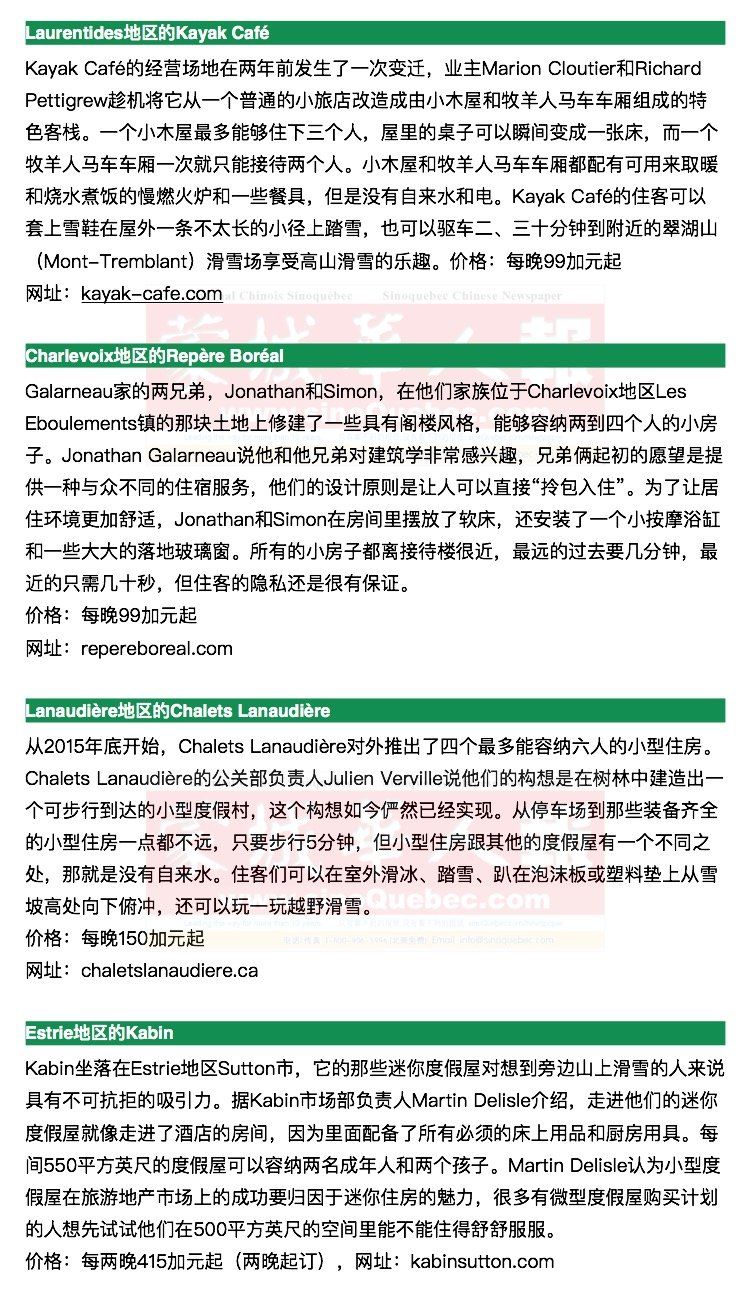 迷你度假屋在最近几年已经成为魁省社会的一种时尚,很多人都梦想着拥有一个空间不大,但却温暖舒适的“小窝”。买房之前先住进去体验一番的想法,估计没有人反对,而且也很好落实,因为在魁省好些地方都有专门供人短期租住的小房子,魁北克省户外活动场所管理机构SEPAQ(la Société des établissements de plein air du Québec)更是在2013年首次展出了一批最多能容纳四人的小度假屋。下面就一起来看看魁北克省内能够让人们在大自然中静享安逸的四处小型休假居所。 |