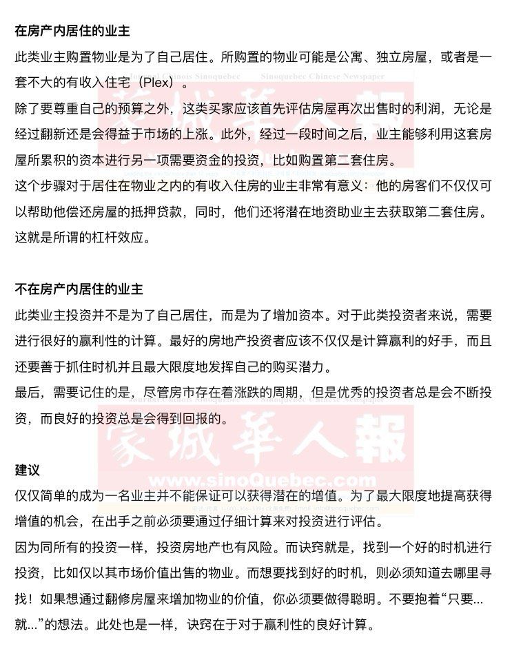 有时候,房地产市场确实会趋于火热。有些地区目前的状况正是如此,出现多起抢Offer竞买的情况。 根据魁北克房地产协会联合会最新发表的一份分析报告,从2017年5月至2018年4月期间,蒙特利尔的Rosemont/La Petite-Patrie区成绩最好。不少于32%的独立房屋交易以高出要价的价格完成,这一比例在共管公寓为16%,Plex投资房为28%。同时,在许多其它城市和区镇所观察到的结果也与之类似。 从这个角度来说,提出这样的疑问是合理的:现在投资房地产是否值得?答案是:一切都取决于买家的出发点和目标。下面就让我们基于两种不同的情况来进行分析: |